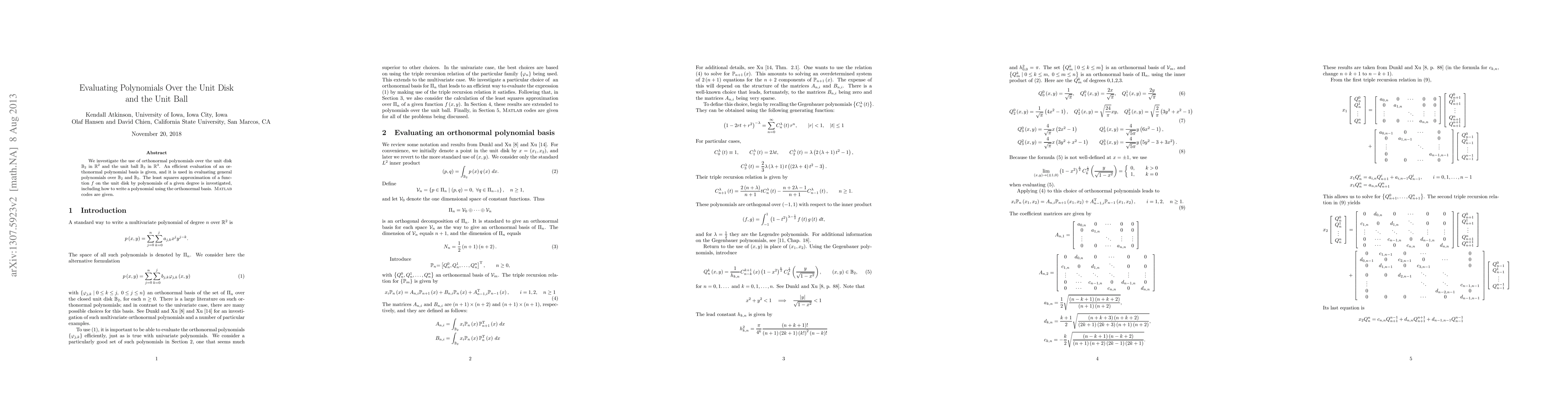 This paper investigates efficient evaluation methods for polynomials over the unit disk and ball in 2D and 3D spaces, including a least squares approximation of functions by polynomials of a given degree.