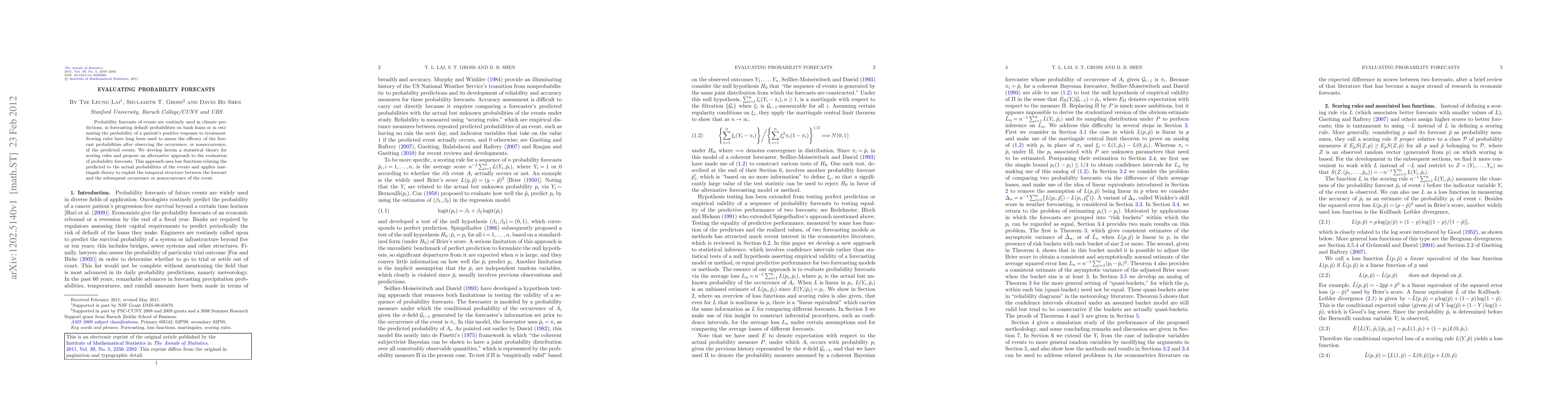 Probability forecasts of events are routinely used in climate predictions, in forecasting default probabilities on bank loans or in estimating the probability of a patient's positive response to treatment. Scoring rules have long been used to assess the efficacy of the forecast probabilities after observing the occurrence, or nonoccurrence, of the predicted events. We develop herein a statistical theory for scoring rules and propose an alternative approach to the evaluation of probability forecasts. This approach uses loss functions relating the predicted to the actual probabilities of the events and applies martingale theory to exploit the temporal structure between the forecast and the subsequent occurrence or nonoccurrence of the event.