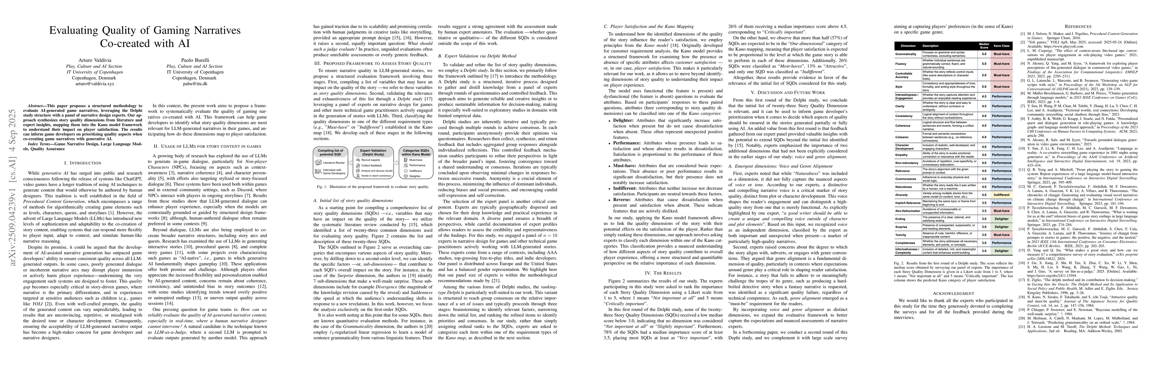 This paper proposes a structured methodology to evaluate AI-generated game narratives, leveraging the Delphi study structure with a panel of narrative design experts. Our approach synthesizes story quality dimensions from literature and expert insights, mapping them into the Kano model framework to understand their impact on player satisfaction. The results can inform game developers on prioritizing quality aspects when co-creating game narratives with generative AI.