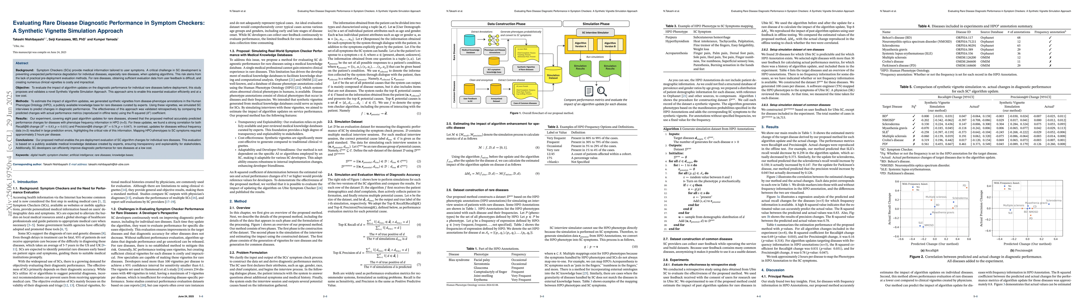 This research is important as it addresses the challenge of preventing unexpected performance degradation for rare diseases in Symptom Checkers when updating algorithms, a critical issue due to the lack of practical pre-deployment evaluation methods and difficulty in obtaining sufficient evaluation data from user feedback for rare diseases.