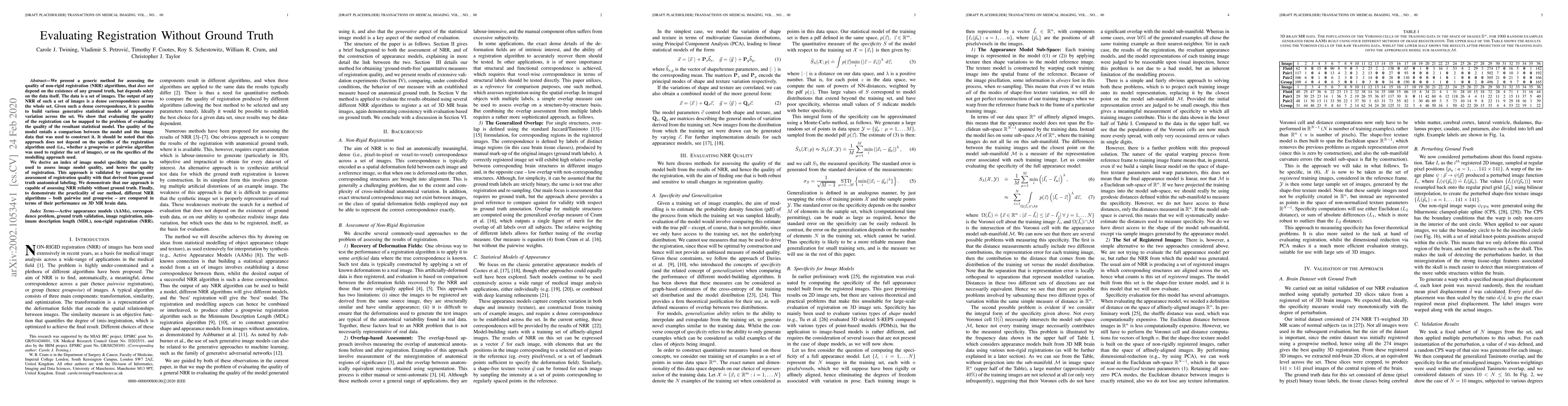 We present a generic method for assessing the quality of non-rigid registration (NRR) algorithms, that does not depend on the existence of any ground truth, but depends solely on the data itself. The data is a set of images. The output of any NRR of such a set of images is a dense correspondence across the whole set. Given such a dense correspondence, it is possible to build various generative statistical models of appearance variation across the set. We show that evaluating the quality of the registration can be mapped to the problem of evaluating the quality of the resultant statistical model. The quality of the model entails a comparison between the model and the image data that was used to construct it. It should be noted that this approach does not depend on the specifics of the registration algorithm used (i.e., whether a groupwise or pairwise algorithm was used to register the set of images), or on the specifics of the modelling approach used. We derive an index of image model specificity that can be used to assess image model quality, and hence the quality of registration. This approach is validated by comparing our assessment of registration quality with that derived from ground truth anatomical labeling. We demonstrate that our approach is capable of assessing NRR reliably without ground truth. Finally, to demonstrate the practicality of our method, different NRR algorithms -- both pairwise and groupwise -- are compared in terms of their performance on 3D MR brain data.