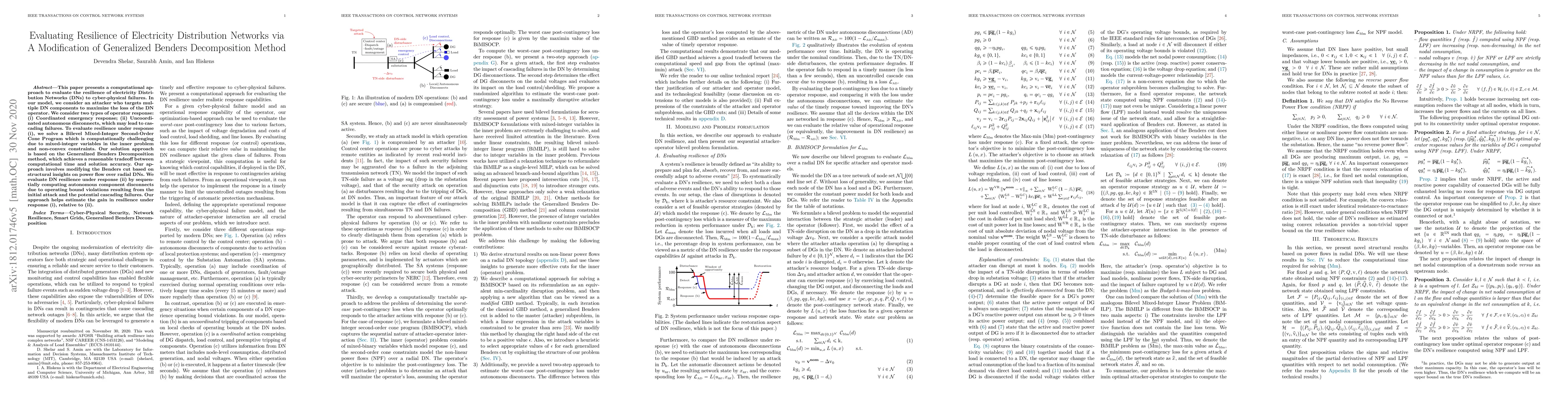 This paper evaluates the resilience of electricity distribution networks against cyber-physical attacks using a modified Generalized Benders Decomposition method. It compares coordinated emergency responses with uncoordinated autonomous disconnects to assess resilience, achieving a balance between computational efficiency and solution accuracy.