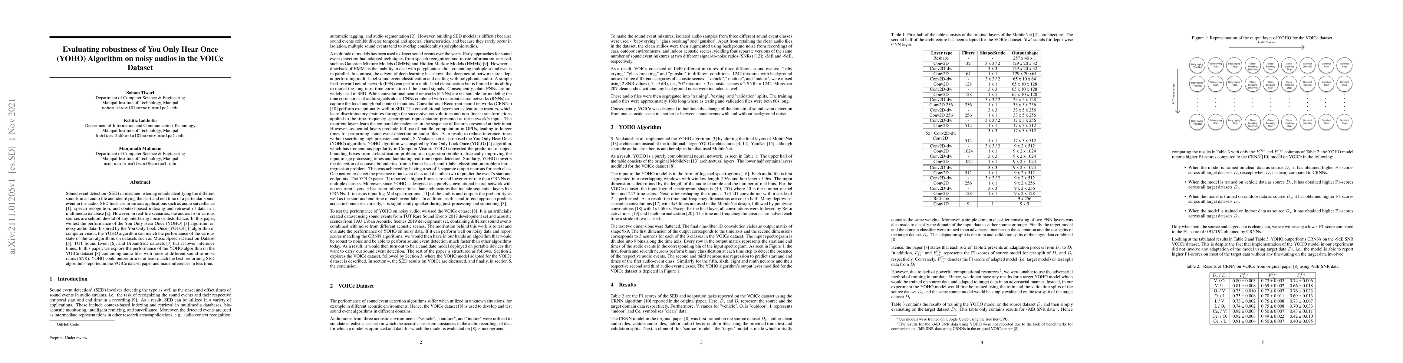 This paper evaluates the robustness of the You Only Hear Once (YOHO) algorithm for sound event detection in noisy audios using the VOICe dataset, assessing its performance against various state-of-the-art algorithms under different sound-to-noise ratios. The study aims to determine if YOHO can match or outperform existing methods while maintaining lower inference times.