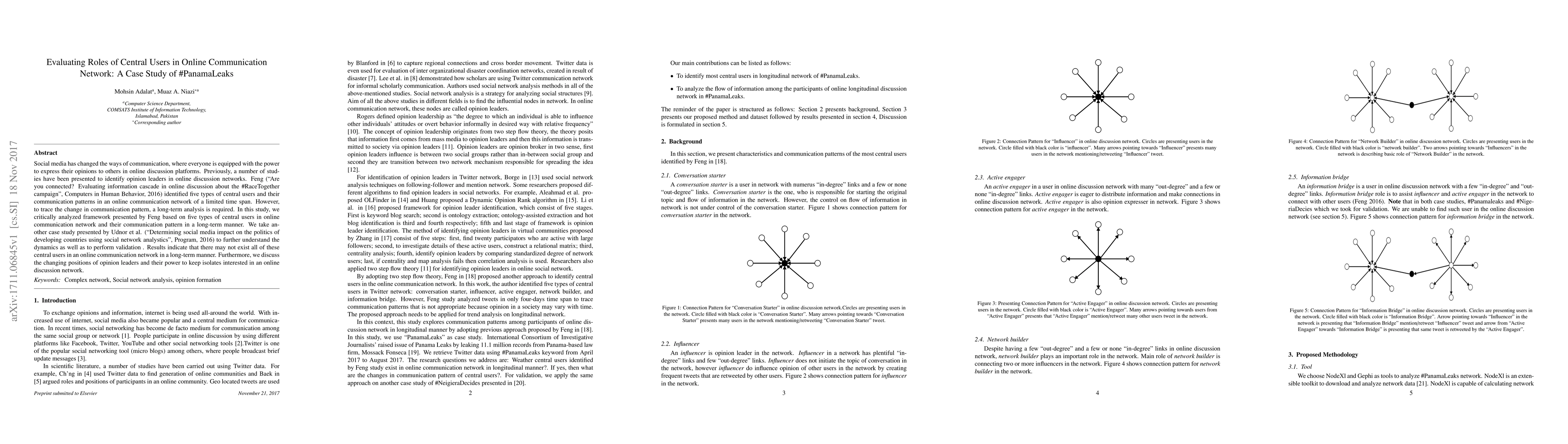 A study analyzed the roles of central users in online communication networks using the #PanamaLeaks case study, finding that not all types of central users may exist in a long-term network and their power can change over time.