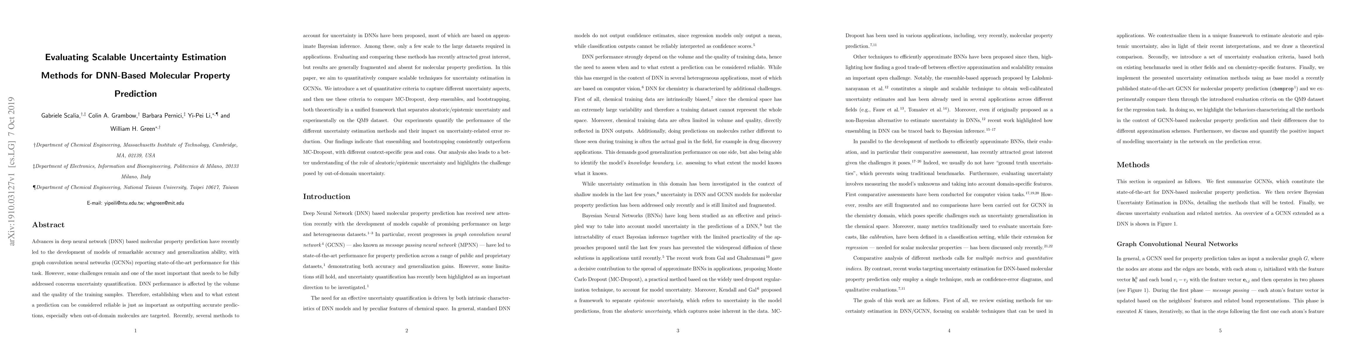 This paper evaluates scalable uncertainty estimation methods for DNN-based molecular property prediction, comparing MC-Dropout, deep ensembles, and bootstrapping. The study finds that ensembling and bootstrapping outperform MC-Dropout, highlighting the importance of understanding aleatoric and epistemic uncertainties in improving prediction reliability.