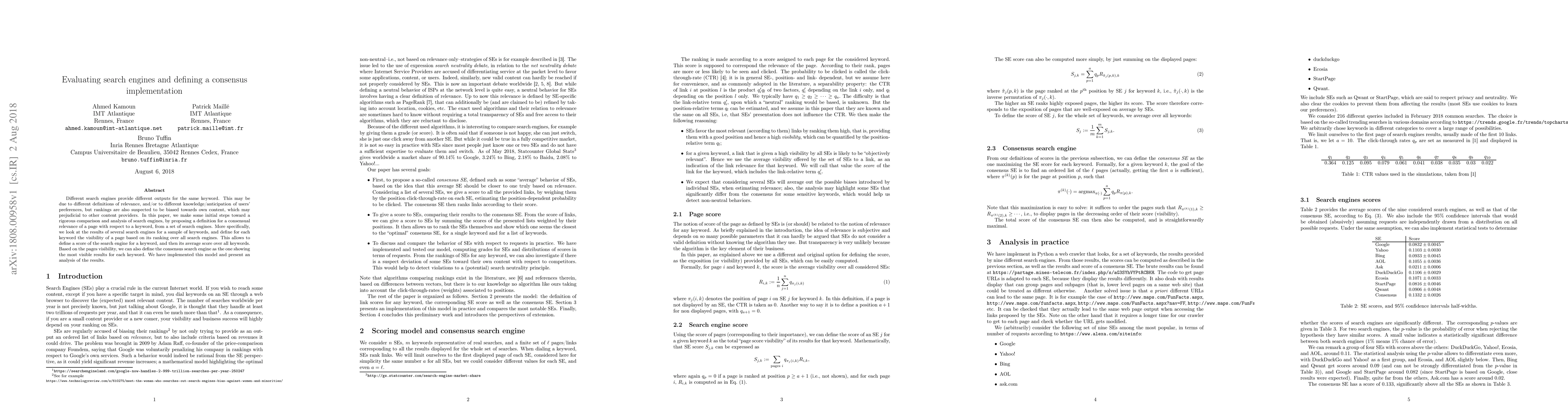 A study evaluates different search engines to define a consensus implementation based on page visibility across various keywords, aiming to provide a more accurate and unbiased search experience.