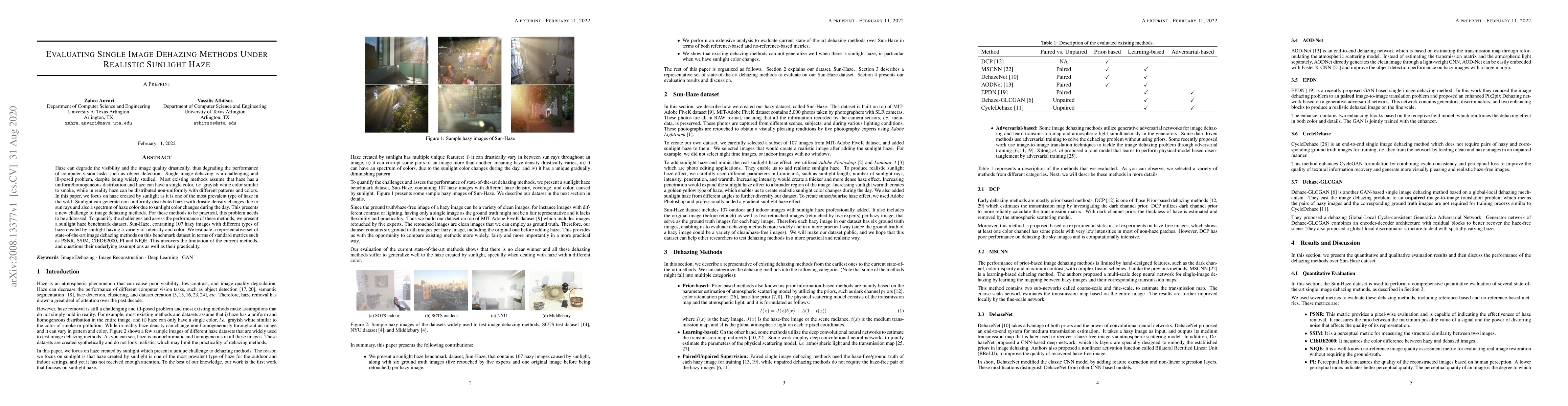 This paper evaluates the effectiveness of state-of-the-art single image dehazing methods under realistic sunlight haze, using a new benchmark dataset, Sun-Haze, that captures non-uniform haze patterns and colors. The study reveals significant limitations of current methods, highlighting the need for more practical solutions.