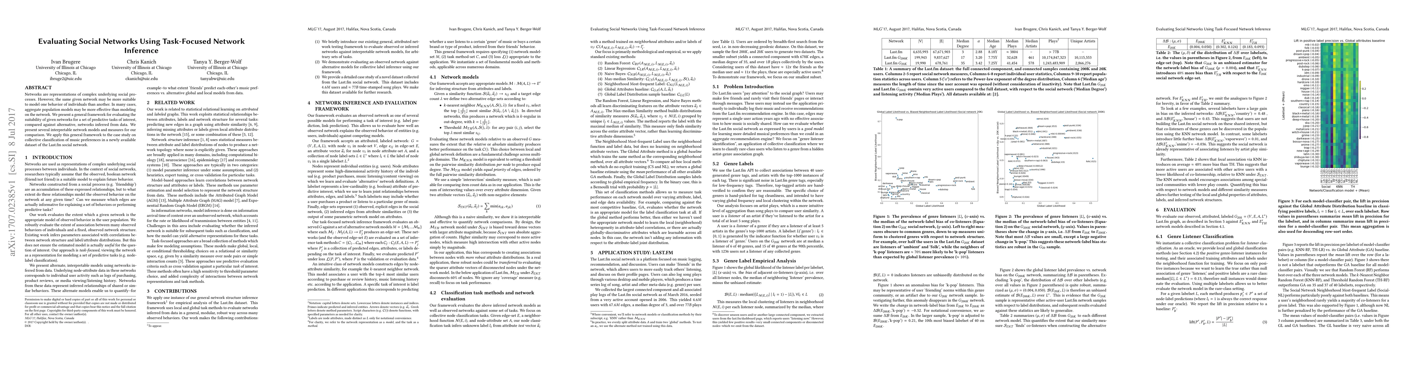 Networks are representations of complex underlying social processes. However, the same given network may be more suitable to model one behavior of individuals than another. In many cases, aggregate population models may be more effective than modeling on the network. We present a general framework for evaluating the suitability of given networks for a set of predictive tasks of interest, compared against alternative, networks inferred from data. We present several interpretable network models and measures for our comparison. We apply this general framework to the case study on collective classification of music preferences in a newly available dataset of the Last.fm social network.