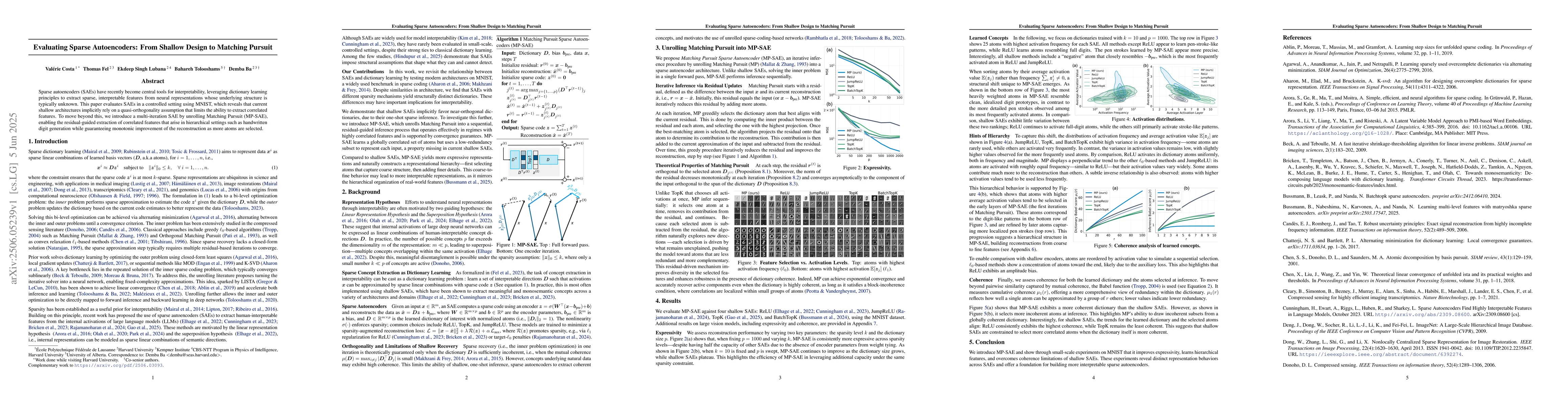 The research evaluates Sparse Autoencoders (SAEs) using a controlled setting with MNIST, introducing a multi-iteration SAE (MP-SAE) by unrolling Matching Pursuit to extract correlated features in hierarchical settings.