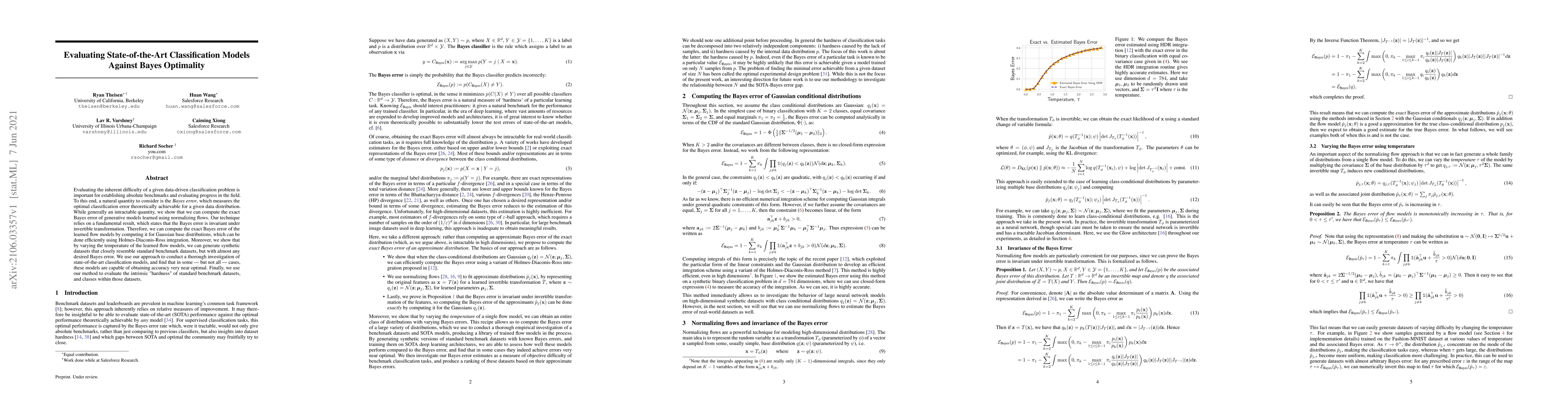 Researchers developed a method to calculate the optimal classification error achievable by machine learning models, known as Bayes error, for generative models like normalizing flows. They found that some state-of-the-art models can achieve accuracy near optimal, but not all.