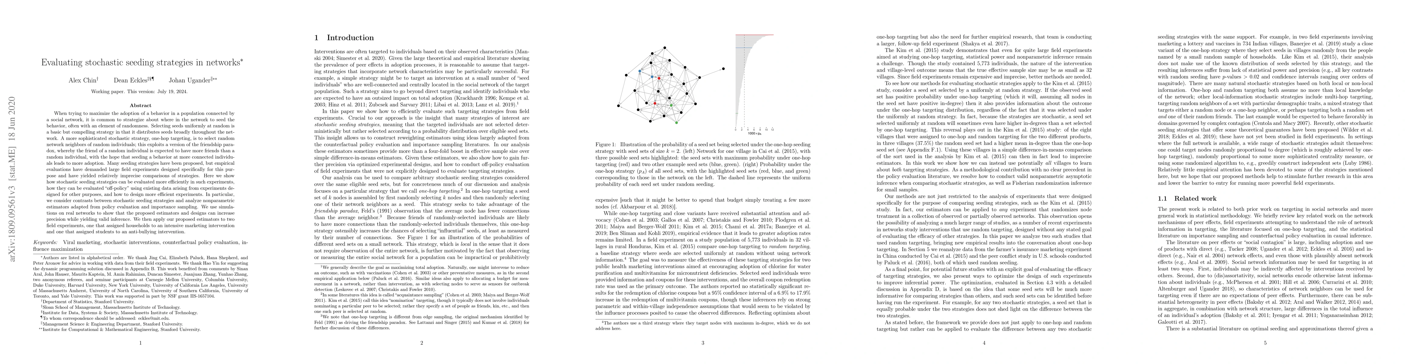 The paper proposes a method for evaluating stochastic seeding strategies in networks more efficiently, using off-policy evaluation and importance sampling. It demonstrates the approach through simulations on real networks and applies it to two field experiments: an intensive marketing intervention and an anti-bullying intervention.