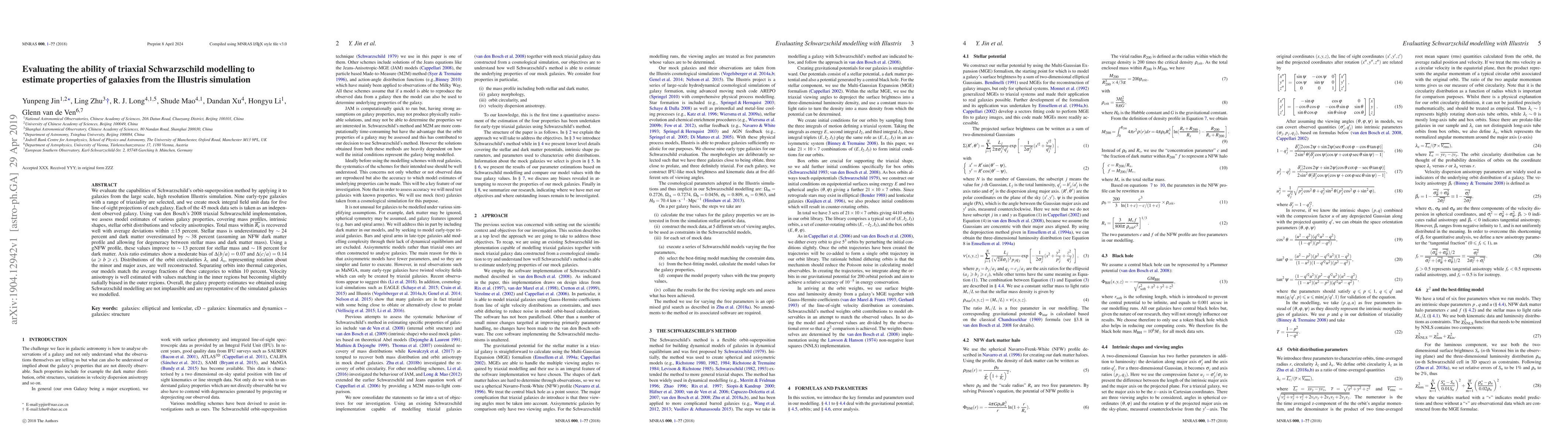 This study evaluates Schwarzschild's orbit-superposition method for estimating galaxy properties from the Illustris simulation, finding that while total mass estimates are accurate within 15%, stellar mass is underestimated and dark matter overestimated, with improvements using gNFW profiles. Axis ratios and orbit distributions are well reconstructed, though outer regions show slight radial bias in velocity anisotropy.