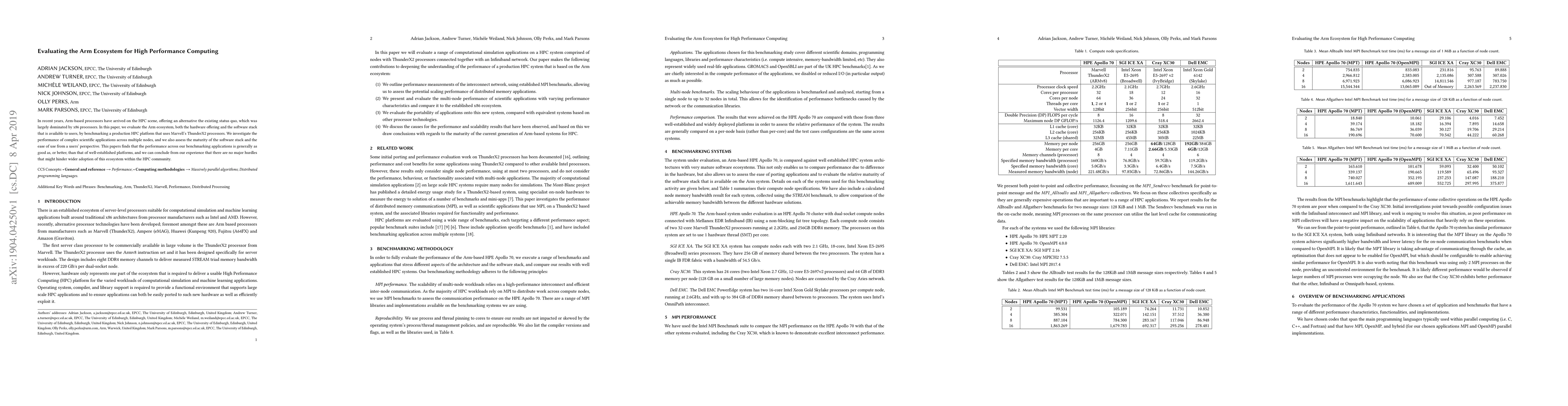 This paper evaluates the Arm ecosystem for high performance computing (HPC), benchmarking Marvell's ThunderX2 processors and finding comparable or superior performance to x86 platforms. The study concludes that the Arm ecosystem's software stack is mature and user-friendly, suggesting no major barriers to its adoption in HPC.