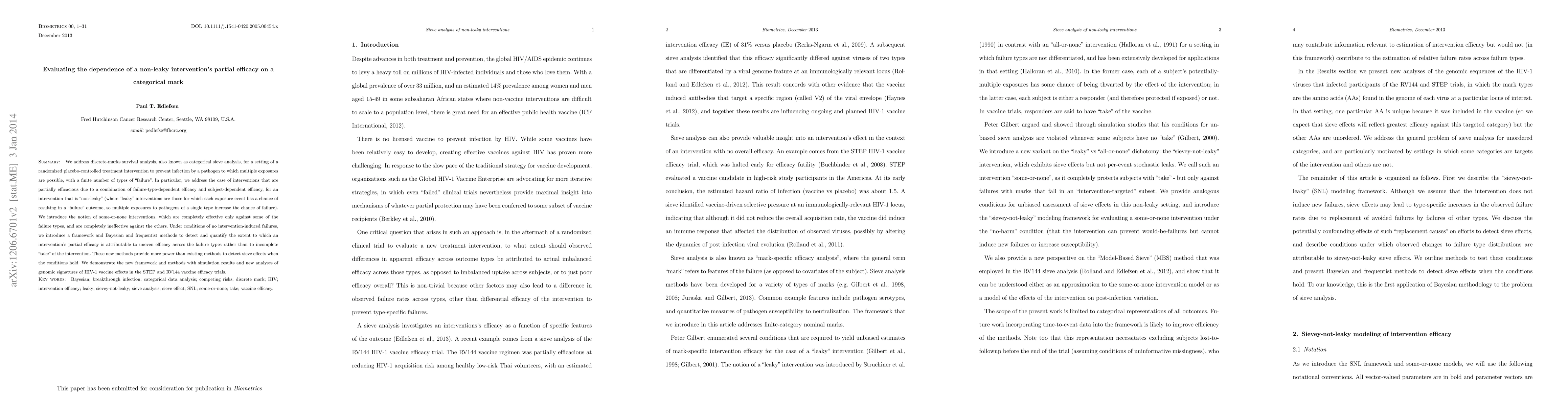 We address discrete-marks survival analysis, also known as categorical sieve analysis, for a setting of a randomized placebo-controlled treatment intervention to prevent infection by a pathogen to which multiple exposures are possible, with a finite number of types of "failure". In particular, we address the case of interventions that are partially efficacious due to a combination of failure-type-dependent efficacy and subject-dependent efficacy, for an intervention that is "non-leaky" (where "leaky" interventions are those for which each exposure event has a chance of resulting in a "failure" outcome, so multiple exposures to pathogens of a single type increase the chance of failure). We introduce the notion of some-or-none interventions, which are completely effective only against some of the failure types, and are completely ineffective against the others. Under conditions of no intervention-induced failures, we introduce a framework and Bayesian and frequentist methods to detect and quantify the extent to which an intervention's partial efficacy is attributable to uneven efficacy across the failure types rather than to incomplete "take" of the intervention. These new methods provide more power than existing methods to detect sieve effects when the conditions hold. We demonstrate the new framework and methods with simulation results and new analyses of genomic signatures of HIV-1 vaccine effects in the STEP and RV144 vaccine efficacy trials.