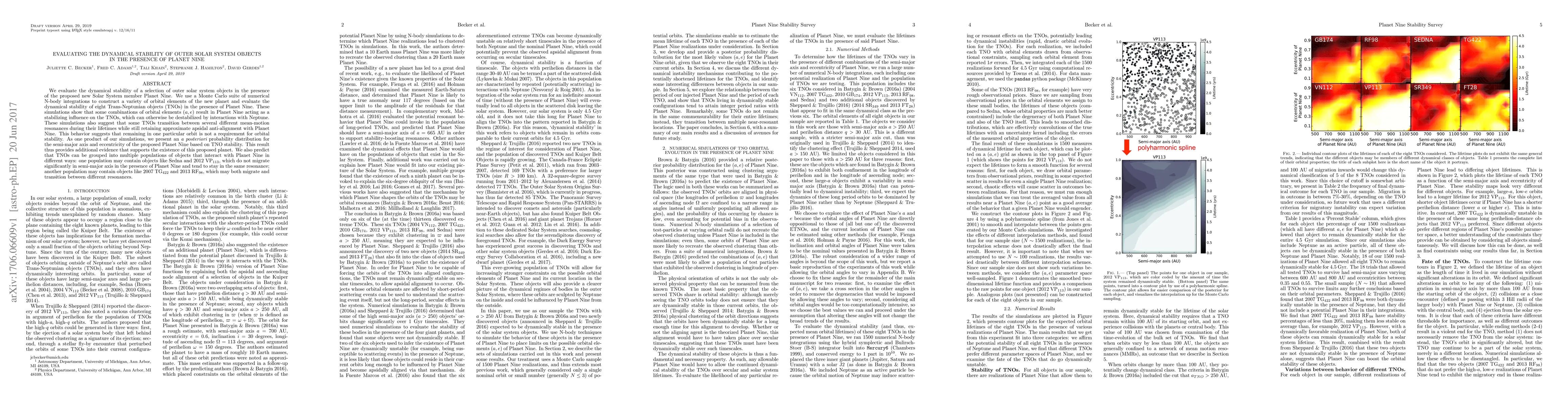 We evaluate the dynamical stability of a selection of outer solar system objects in the presence of the proposed new Solar System member Planet Nine. We use a Monte Carlo suite of numerical N-body integrations to construct a variety of orbital elements of the new planet and evaluate the dynamical stability of eight Trans-Neptunian objects (TNOs) in the presence of Planet Nine. These simulations show that some combinations of orbital elements ($a,e$) result in Planet Nine acting as a stabilizing influence on the TNOs, which can otherwise be destabilized by interactions with Neptune. These simulations also suggest that some TNOs transition between several different mean-motion resonances during their lifetimes while still retaining approximate apsidal anti-alignment with Planet Nine. This behavior suggests that remaining in one particular orbit is not a requirement for orbital stability. As one product of our simulations, we present an {\it a posteriori} probability distribution for the semi-major axis and eccentricity of the proposed Planet Nine based on TNO stability. This result thus provides additional evidence that supports the existence of this proposed planet. We also predict that TNOs can be grouped into multiple populations of objects that interact with Planet Nine in different ways: one population may contain objects like Sedna and 2012 VP$_{113}$, which do not migrate significantly in semi-major axis in the presence of Planet Nine and tend to stay in the same resonance; another population may contain objects like 2007 TG$_{422}$ and 2013 RF$_{98}$, which may both migrate and transition between different resonances.