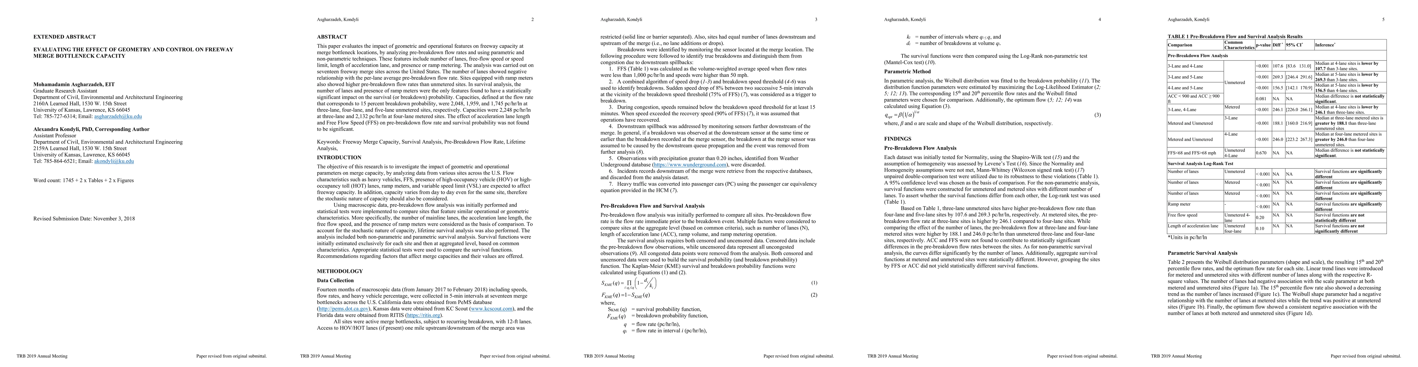 This study evaluates the impact of geometric and operational features on freeway merge bottleneck capacity using pre-breakdown flow rate analysis and non-parametric/parametric survival analysis on seventeen freeway merge sites across the US.