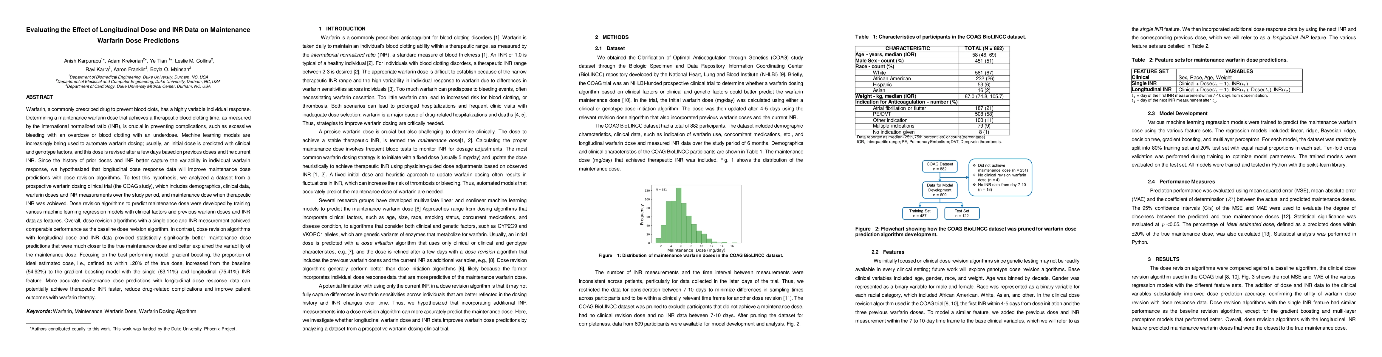 Using warfarin dosing data from the COAG study, researchers found that incorporating longitudinal dose response data into machine learning models improved maintenance dose predictions, leading to more accurate therapeutic INR levels.