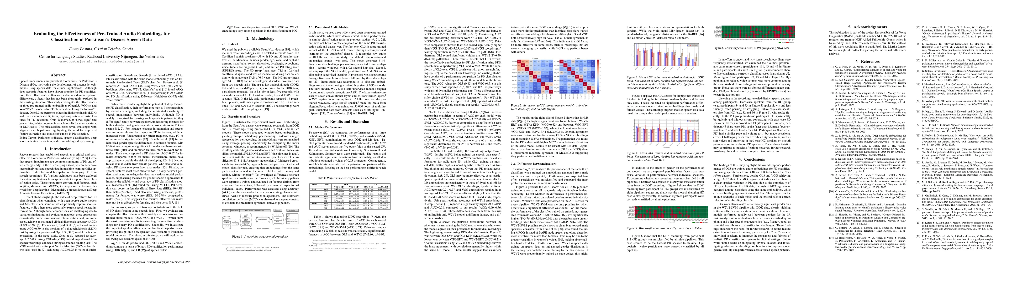 The paper presents a comparative analysis of pre-trained audio embeddings for PD speech data classification, identifying OpenL3 as the most effective model.
