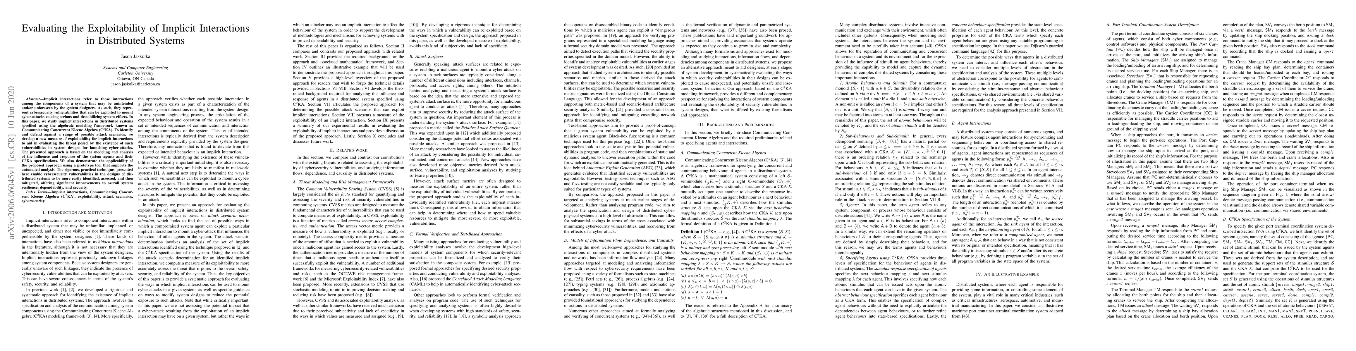This paper evaluates the exploitability of implicit interactions in distributed systems, focusing on vulnerabilities that can be exploited for cyber-attacks. It introduces a new measure for assessing these threats, based on the Communicating Concurrent Kleene Algebra framework, and demonstrates its application with a prototype tool to enhance system security.