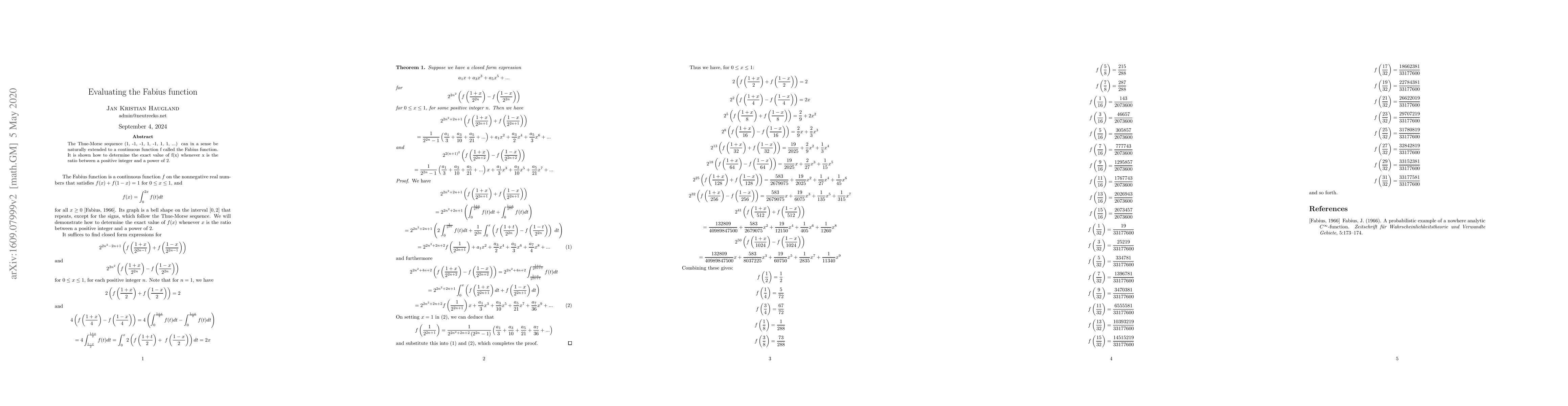 The Thue-Morse sequence (1, -1, -1, 1, -1, 1, 1, ...) can in a sense be naturally extended to a continuous function f called the Fabius function. It is shown how to determine the exact value of f(x) whenever x is the ratio between a positive integer and a power of 2.