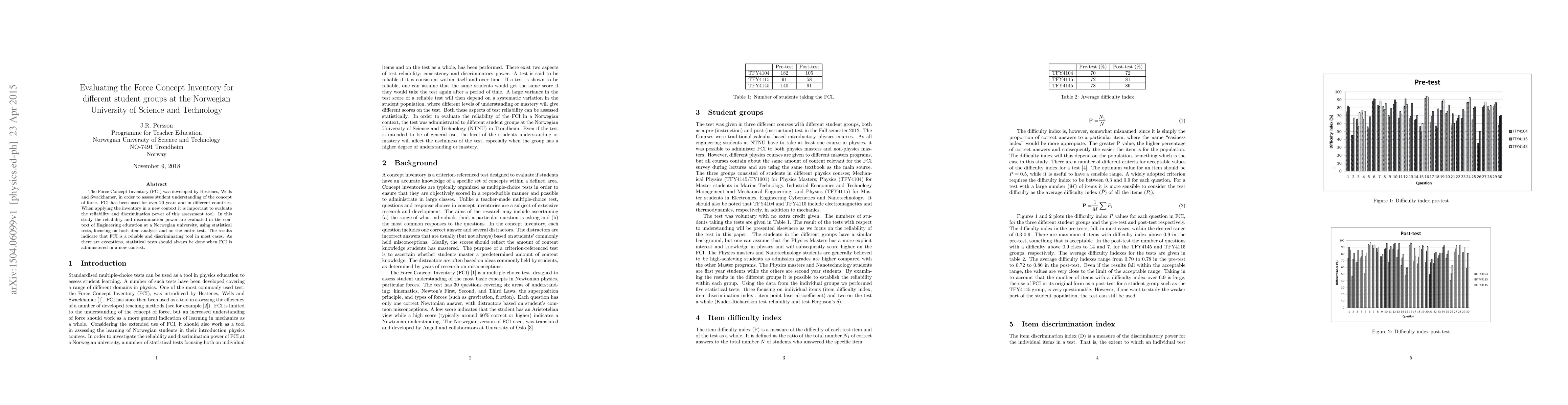 This study evaluates the reliability and discrimination power of the Force Concept Inventory (FCI) in the context of Engineering education at a Norwegian university. Results indicate FCI is a reliable and effective tool, though exceptions exist, emphasizing the need for statistical tests when applying FCI in new settings.