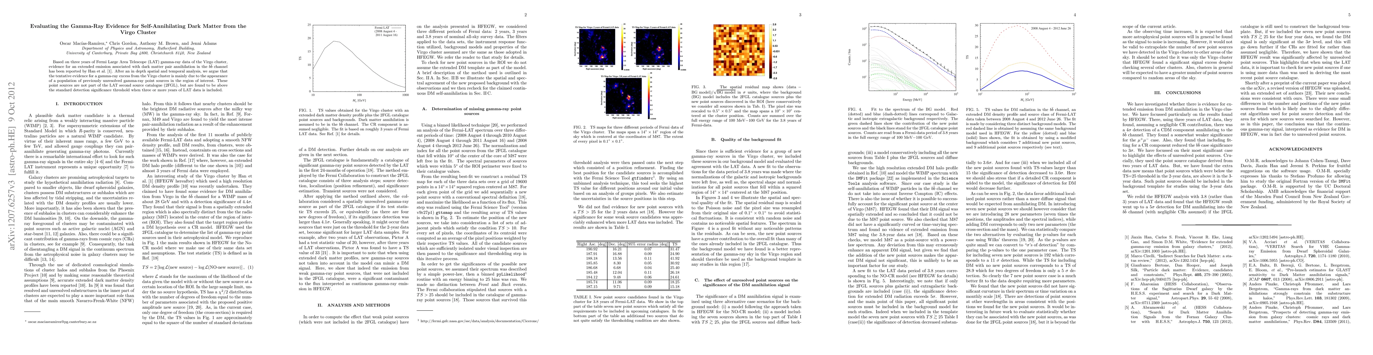This paper reevaluates Fermi LAT gamma-ray data from the Virgo cluster, finding that the reported evidence for dark matter annihilation is likely due to the emergence of previously unresolved gamma-ray point sources rather than self-annihilating dark matter. These sources were not included in the LAT second source catalogue but become significant with extended observation periods.