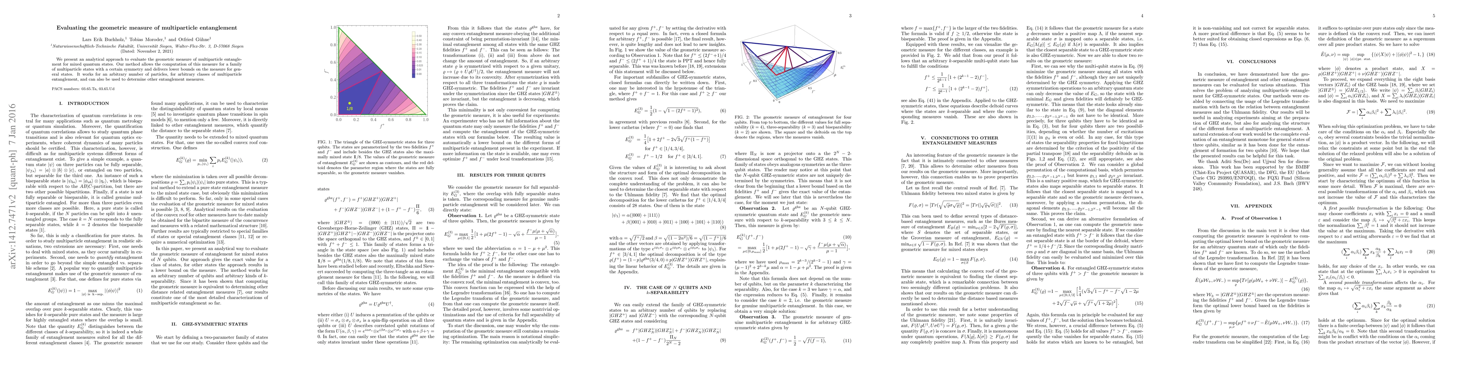 The research presents a unique analytical method for evaluating the geometric measure of multiparticle entanglement, offering lower bounds for general states and providing closed-form solutions for important subfamilies of GHZ-symmetric states.