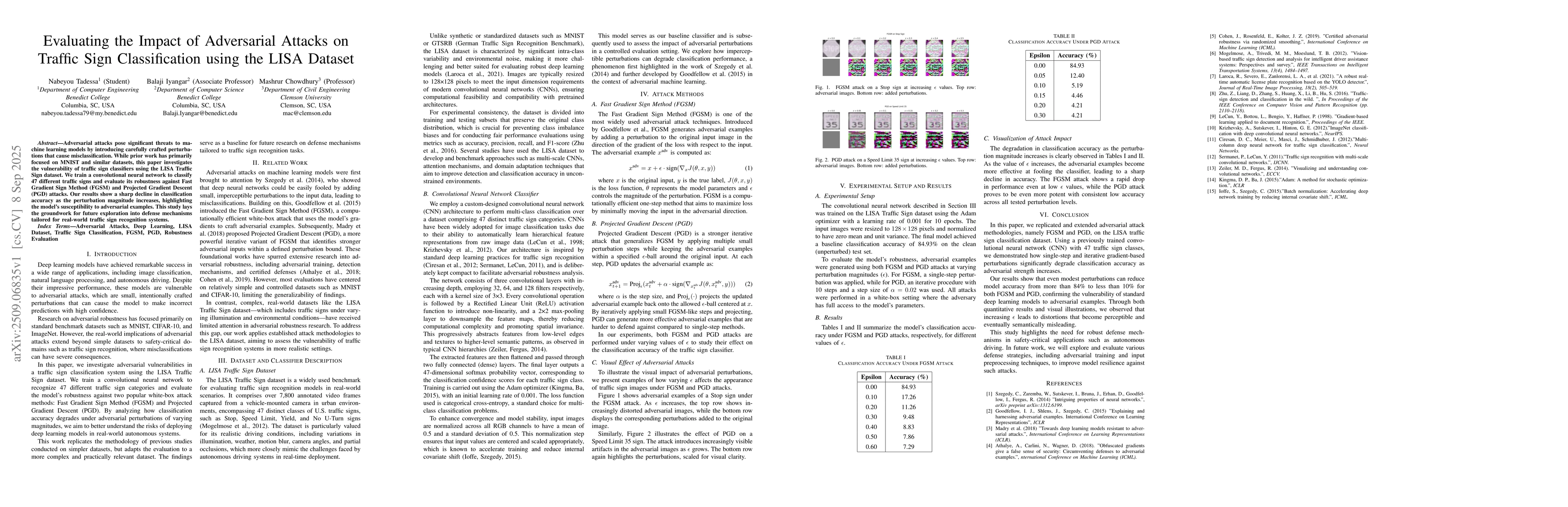Adversarial attacks pose significant threats to machine learning models by introducing carefully crafted perturbations that cause misclassification. While prior work has primarily focused on MNIST and similar datasets, this paper investigates the vulnerability of traffic sign classifiers using the LISA Traffic Sign dataset. We train a convolutional neural network to classify 47 different traffic signs and evaluate its robustness against Fast Gradient Sign Method (FGSM) and Projected Gradient Descent (PGD) attacks. Our results show a sharp decline in classification accuracy as the perturbation magnitude increases, highlighting the models susceptibility to adversarial examples. This study lays the groundwork for future exploration into defense mechanisms tailored for real-world traffic sign recognition systems.