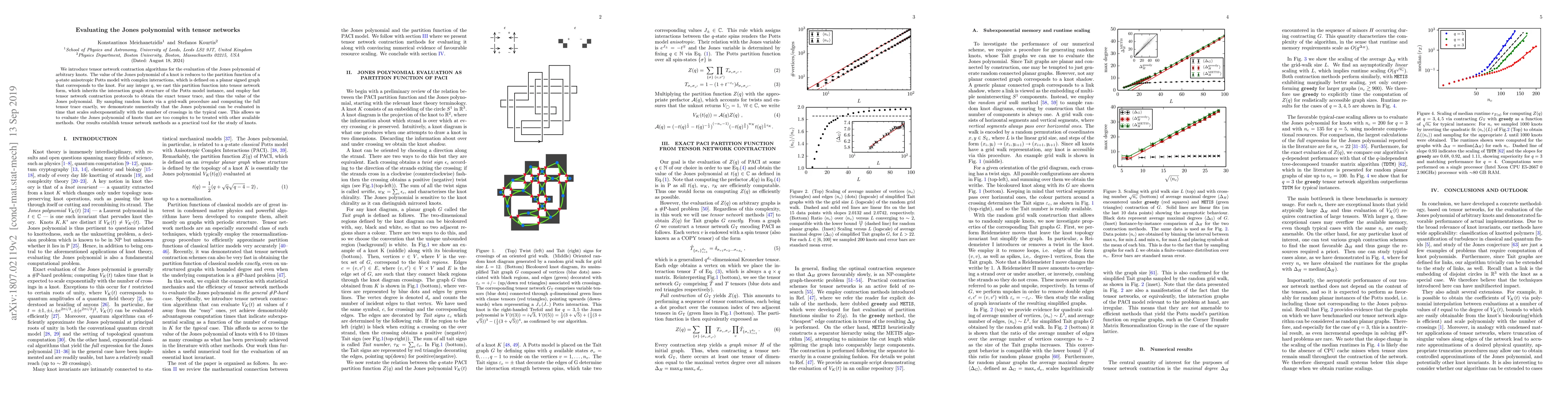 This paper introduces tensor network algorithms for evaluating the Jones polynomial of arbitrary knots, demonstrating subexponential scaling in complexity. It shows that the partition function of a $q$-state Potts model, corresponding to the knot, can be represented as a tensor network, enabling efficient computation of the Jones polynomial for complex knots.