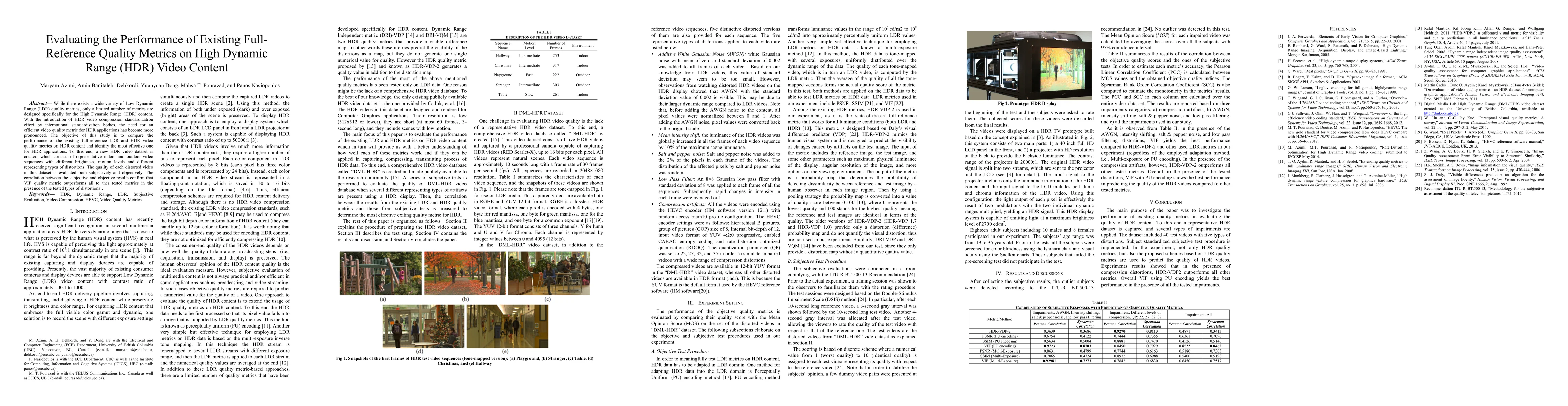 This study evaluates the performance of existing full-reference quality metrics on High Dynamic Range (HDR) video content, comparing both Low Dynamic Range (LDR) and HDR-specific metrics. The results show that the VIF metric outperforms others in assessing HDR video quality under various distortions.