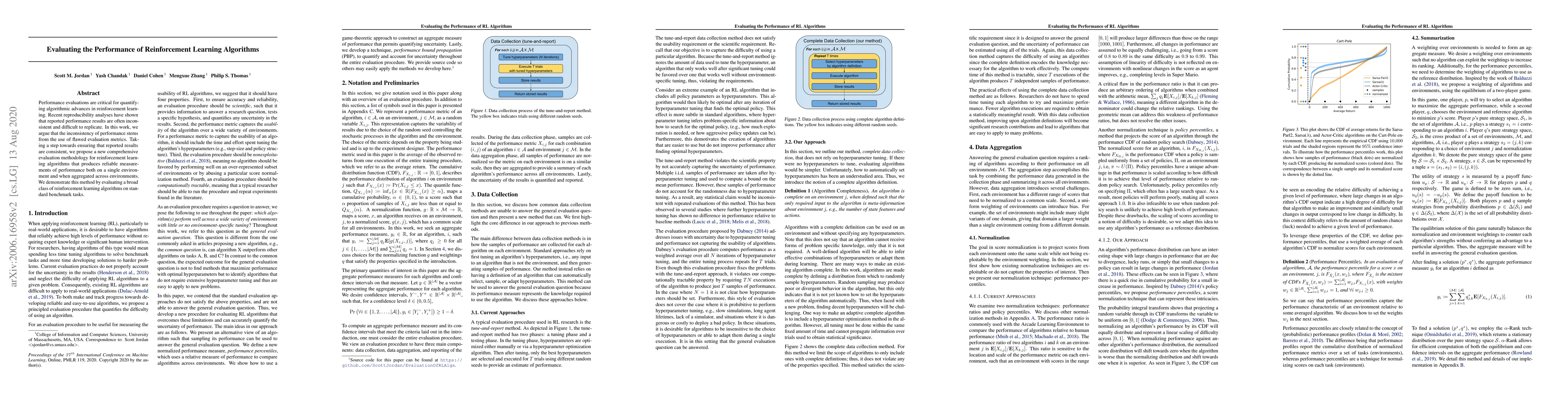 This paper proposes a new comprehensive evaluation methodology to ensure consistent and reliable performance measurements for reinforcement learning algorithms, addressing the issue of inconsistent and hard-to-replicate reported results. The method is demonstrated through evaluations of various algorithms on standard benchmark tasks.