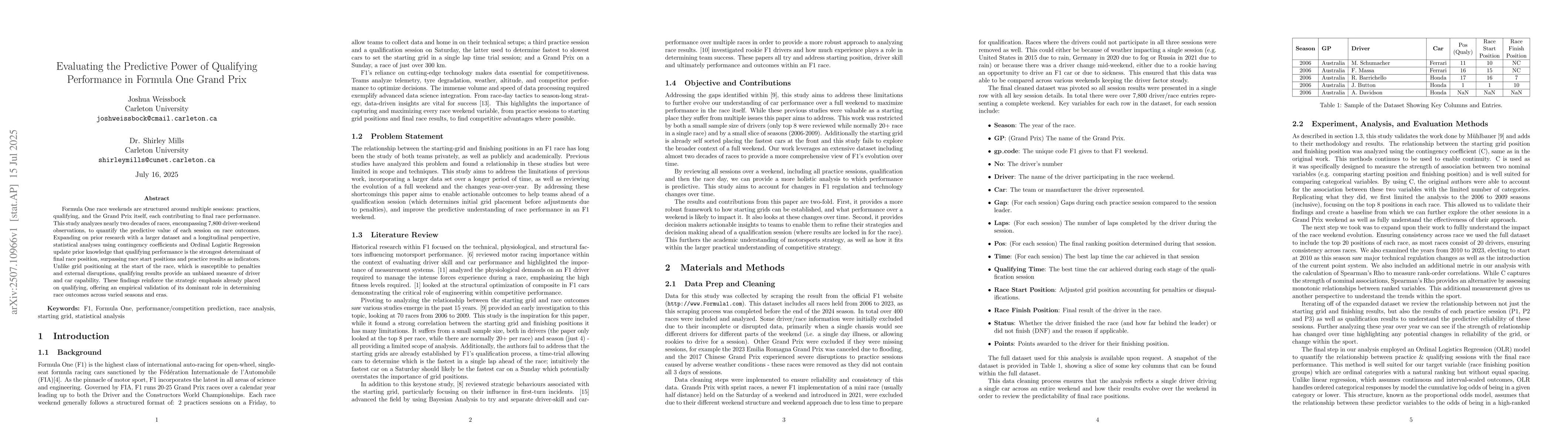 Formula One race weekends are structured around multiple sessions: practices, qualifying, and the Grand Prix itself, each contributing to final race performance. This study analyzes nearly two decades of races, encompassing 7,800 driver-weekend observations, to quantify the predictive value of each session on race outcomes. Expanding on prior research with a larger dataset and a longitudinal perspective, statistical analyses using contingency coefficients and Ordinal Logistic Regression update prior knowledge that qualifying performance is the strongest determinant of final race position, surpassing race start positions and practice results as indicators. Unlike grid positioning at the start of the race, which is susceptible to penalties and external disruptions, qualifying results provide an unbiased measure of driver and car capability. These findings reinforce the strategic emphasis already placed on qualifying, offering an empirical validation of its dominant role in determining race outcomes across varied seasons and eras.