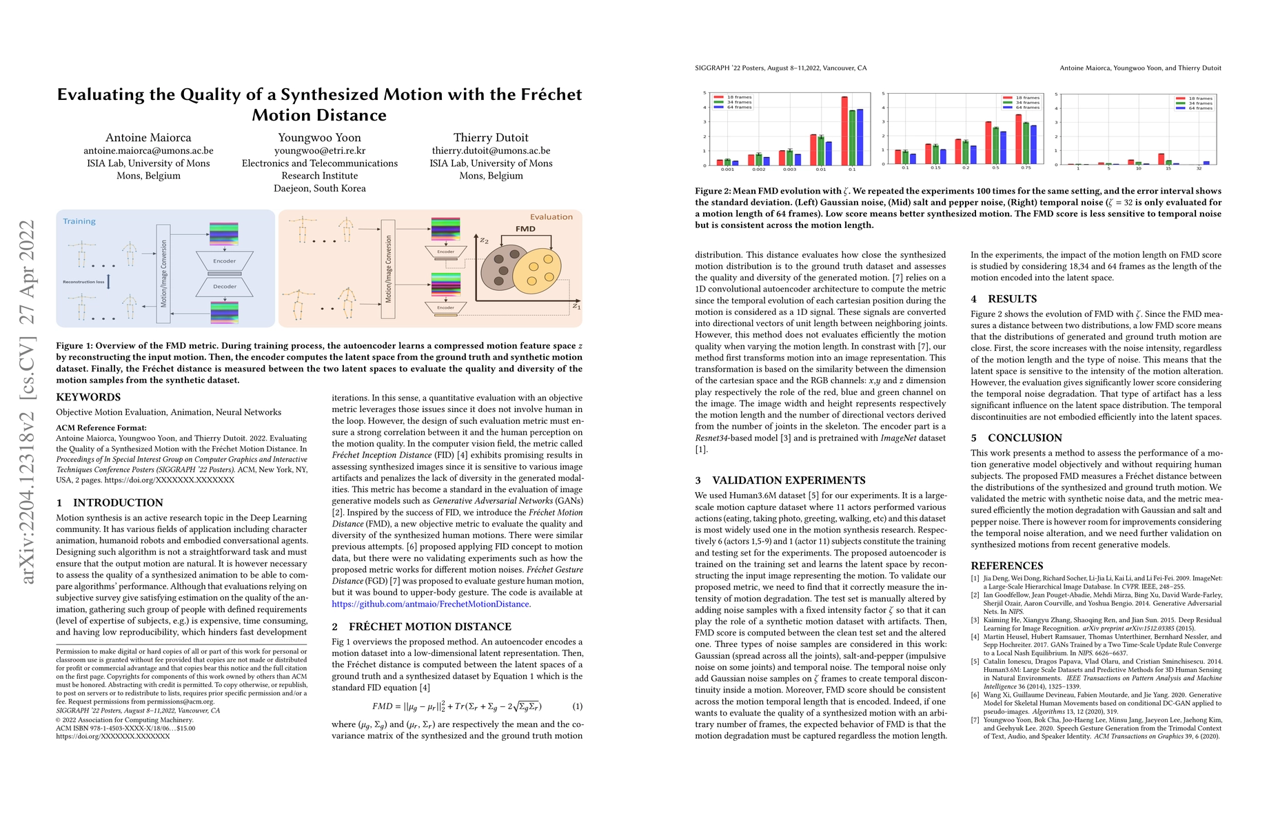 The findings suggest that this distance metric can be an effective tool for assessing the plausibility and coherence of synthesized motions in various fields such as animation and robotics.