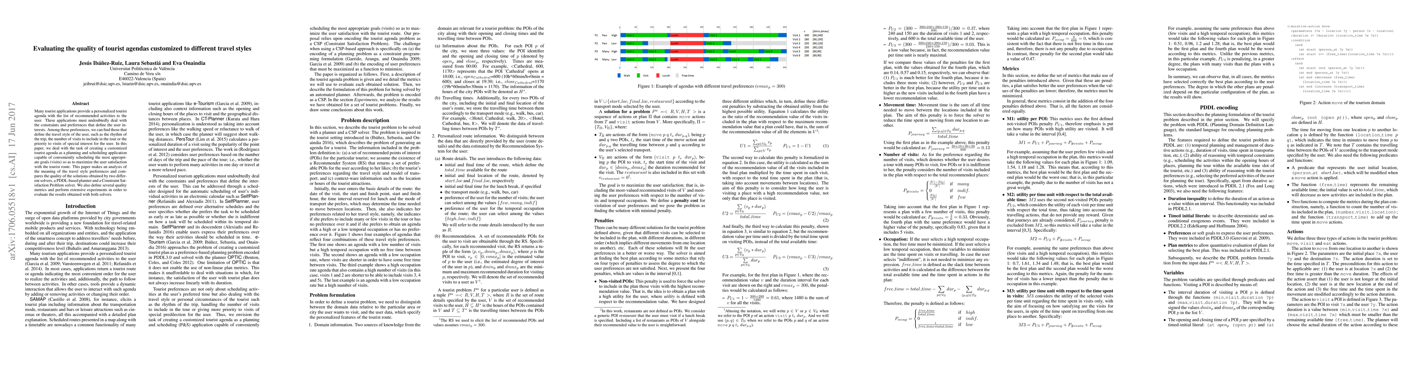 This paper evaluates the effectiveness of customized tourist agendas tailored to different travel styles, comparing the performance of two planning solvers: a PDDL-based planner and a Constraint Satisfaction Problem solver. Extensive experiments are conducted to assess the quality metrics of the generated tourist routes.