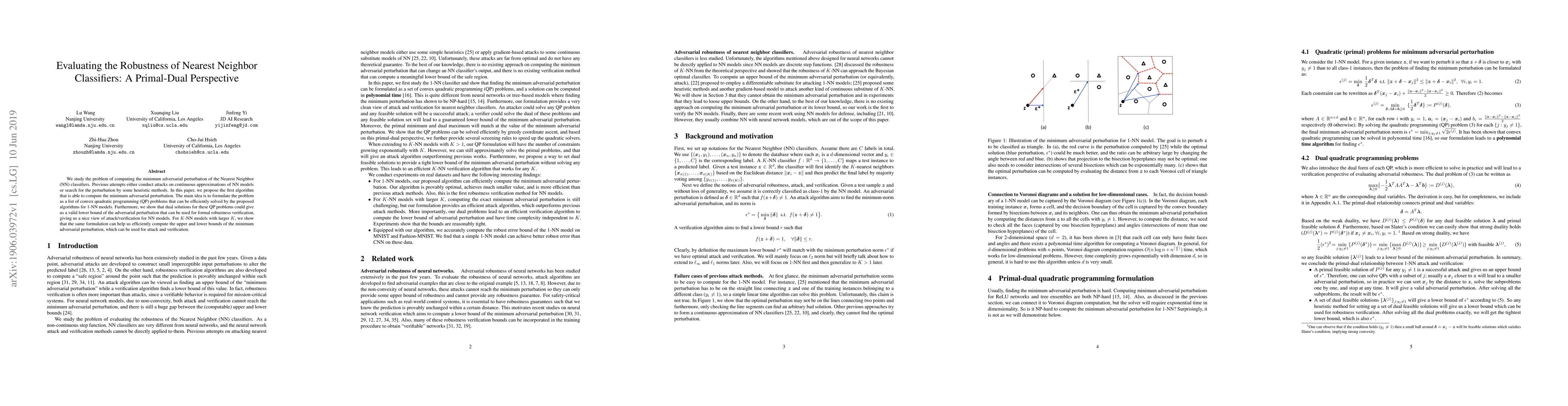 This paper introduces an algorithm to compute the minimum adversarial perturbation for Nearest Neighbor (NN) classifiers, a problem not previously addressed directly. The method formulates the issue as a series of convex quadratic programming problems, providing efficient solutions for 1-NN models. It also offers bounds for K-NN models, useful for both attack and robustness verification.