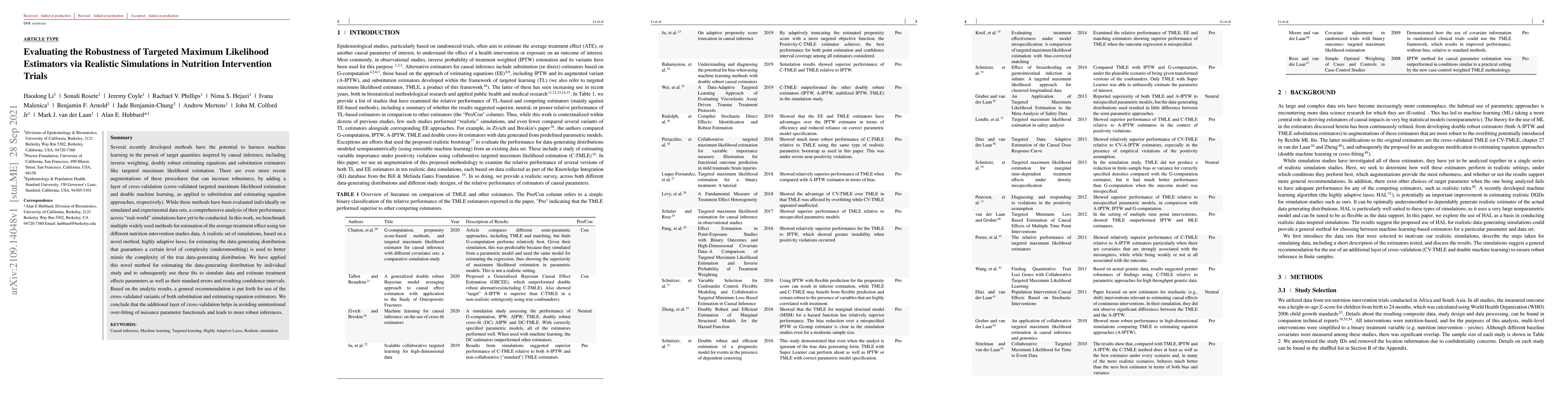 Several recently developed methods have the potential to harness machine learning in the pursuit of target quantities inspired by causal inference, including inverse weighting, doubly robust estimating equations and substitution estimators like targeted maximum likelihood estimation. There are even more recent augmentations of these procedures that can increase robustness, by adding a layer of cross-validation (cross-validated targeted maximum likelihood estimation and double machine learning, as applied to substitution and estimating equation approaches, respectively). While these methods have been evaluated individually on simulated and experimental data sets, a comprehensive analysis of their performance across ``real-world'' simulations have yet to be conducted. In this work, we benchmark multiple widely used methods for estimation of the average treatment effect using ten different nutrition intervention studies data. A realistic set of simulations, based on a novel method, highly adaptive lasso, for estimating the data-generating distribution that guarantees a certain level of complexity (undersmoothing) is used to better mimic the complexity of the true data-generating distribution. We have applied this novel method for estimating the data-generating distribution by individual study and to subsequently use these fits to simulate data and estimate treatment effects parameters as well as their standard errors and resulting confidence intervals. Based on the analytic results, a general recommendation is put forth for use of the cross-validated variants of both substitution and estimating equation estimators. We conclude that the additional layer of cross-validation helps in avoiding unintentional over-fitting of nuisance parameter functionals and leads to more robust inferences.