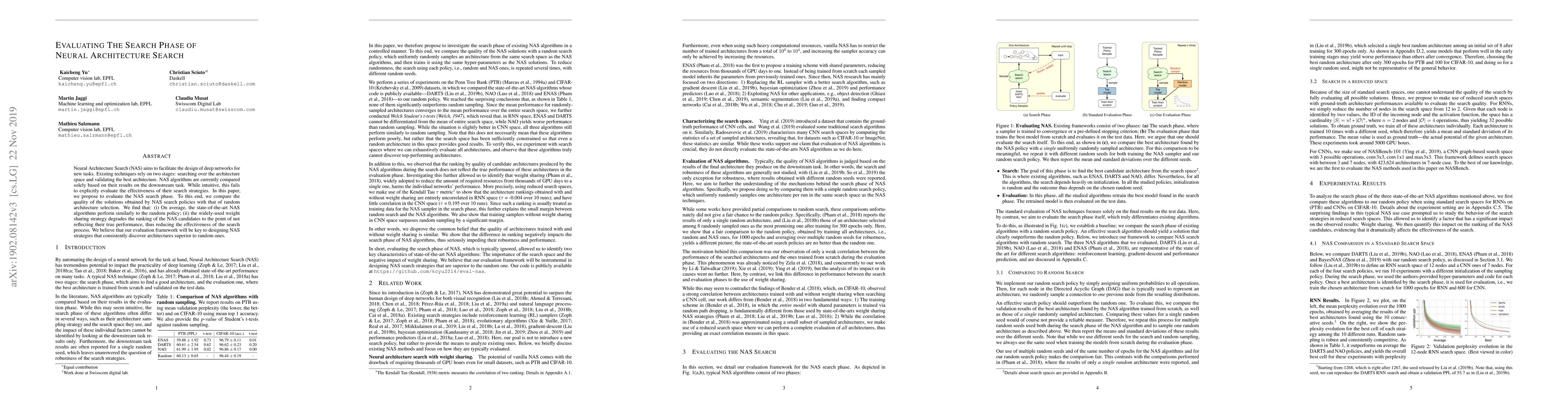 Neural Architecture Search (NAS) aims to facilitate the design of deep networks for new tasks. Existing techniques rely on two stages: searching over the architecture space and validating the best architecture. NAS algorithms are currently compared solely based on their results on the downstream task. While intuitive, this fails to explicitly evaluate the effectiveness of their search strategies. In this paper, we propose to evaluate the NAS search phase. To this end, we compare the quality of the solutions obtained by NAS search policies with that of random architecture selection. We find that: (i) On average, the state-of-the-art NAS algorithms perform similarly to the random policy; (ii) the widely-used weight sharing strategy degrades the ranking of the NAS candidates to the point of not reflecting their true performance, thus reducing the effectiveness of the search process. We believe that our evaluation framework will be key to designing NAS strategies that consistently discover architectures superior to random ones.