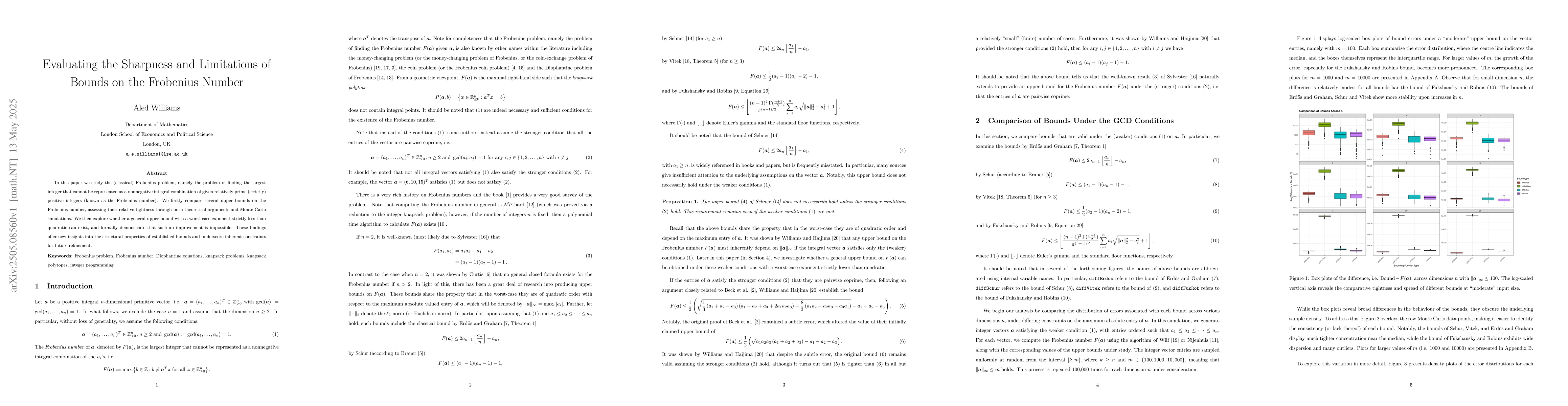 The paper compares several upper bounds on the Frobenius number using theoretical arguments and Monte Carlo simulations.