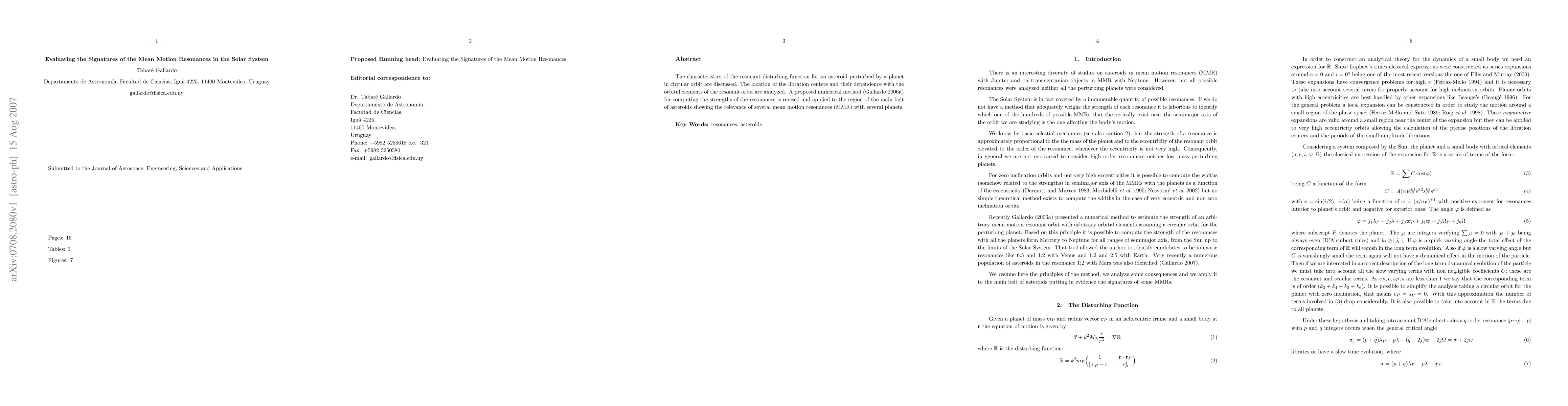 The characteristics of the resonant disturbing function for an asteroid perturbed by a planet in circular orbit are discussed. The location of the libration centers and their dependence with the orbital elements of the resonant orbit are analyzed. A proposed numerical method (Gallardo 2006a) for computing the strengths of the resonances is revised and applied to the region of the main belt of asteroids showing the relevance of several mean motion resonances (MMR) with several planets.