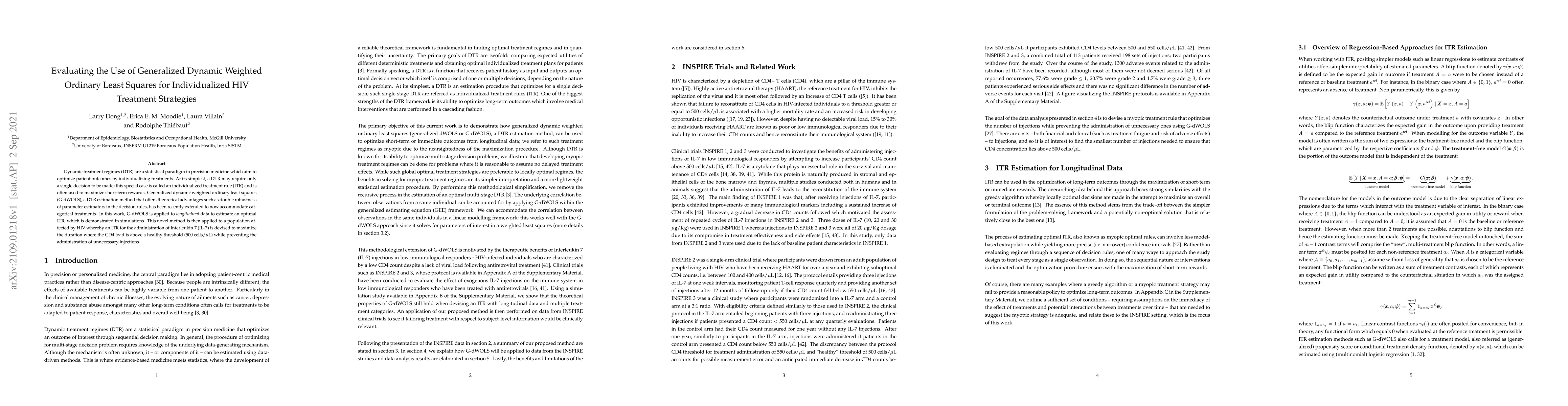 This paper evaluates the Generalized Dynamic Weighted Ordinary Least Squares (G-dWOLS) method for estimating individualized treatment rules (ITR) in precision medicine, specifically for optimizing HIV treatment strategies. The method is demonstrated through simulations and applied to devise an optimal ITR for administering Interleukin 7 (IL-7) to maximize CD4 load duration above a healthy threshold.