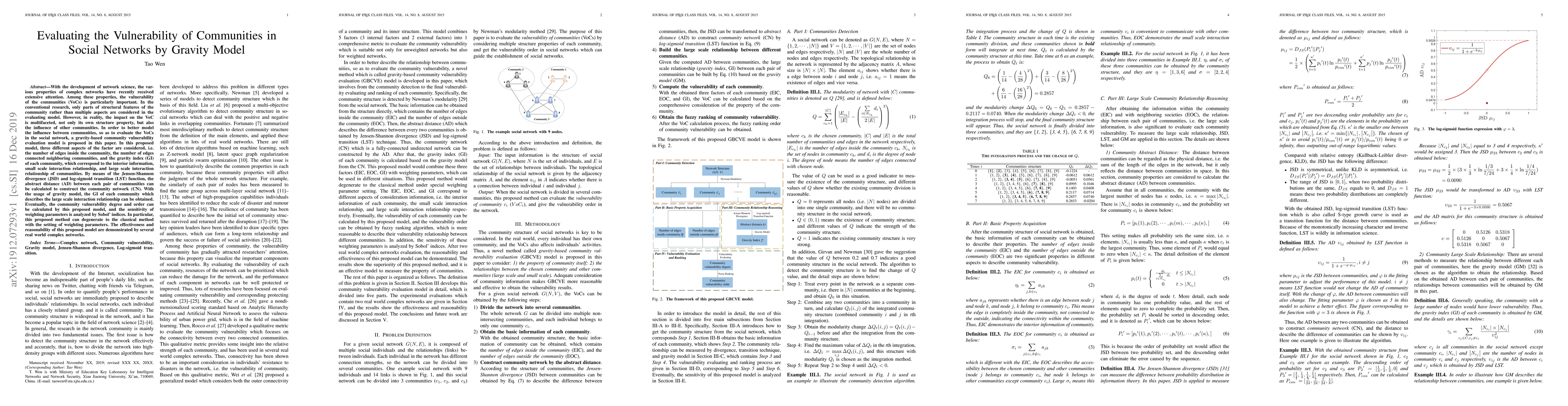 Researchers propose a new model to evaluate the vulnerability of communities in social networks using gravity-based community vulnerability evaluation model, considering multiple aspects such as edges within and between communities, to better understand the impact of community interactions.