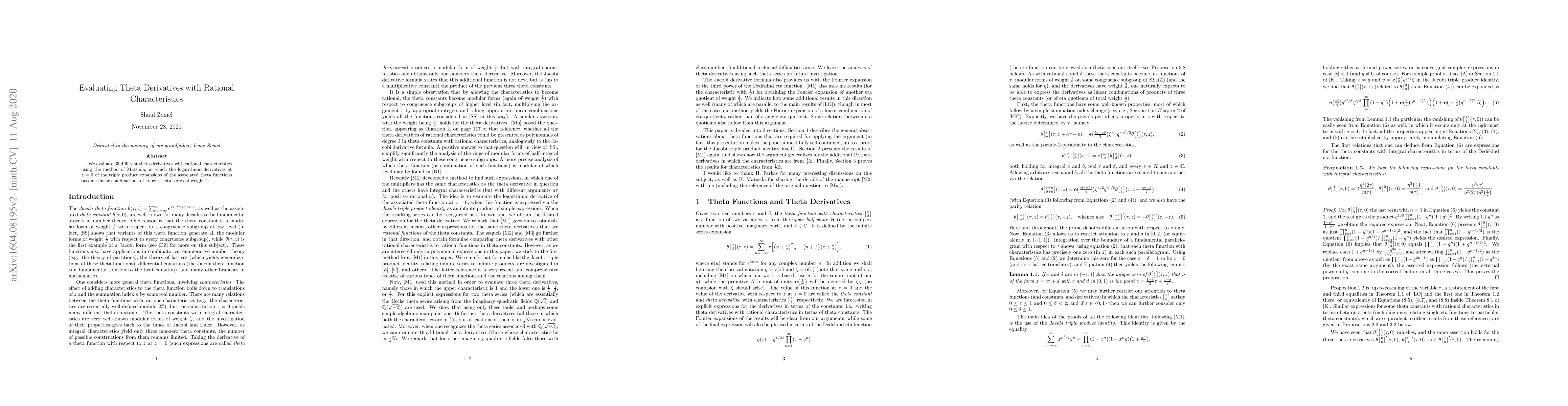We evaluate 35 different theta derivatives with rational characteristics using the method of Matsuda, in which the logarithmic derivatives at $z=0$ of the triple product expansions of the associated theta functions become linear combinations of known theta series of weight 1.