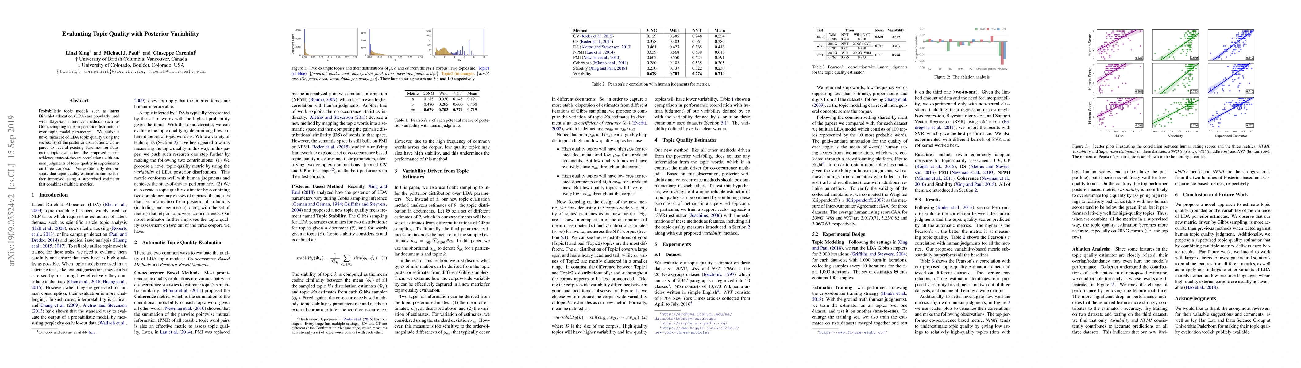 This paper introduces a new metric for evaluating topic quality in probabilistic topic models like LDA, based on posterior distribution variability, which outperforms existing baselines. It also shows that combining multiple metrics in a supervised estimator further enhances the estimation of topic quality.