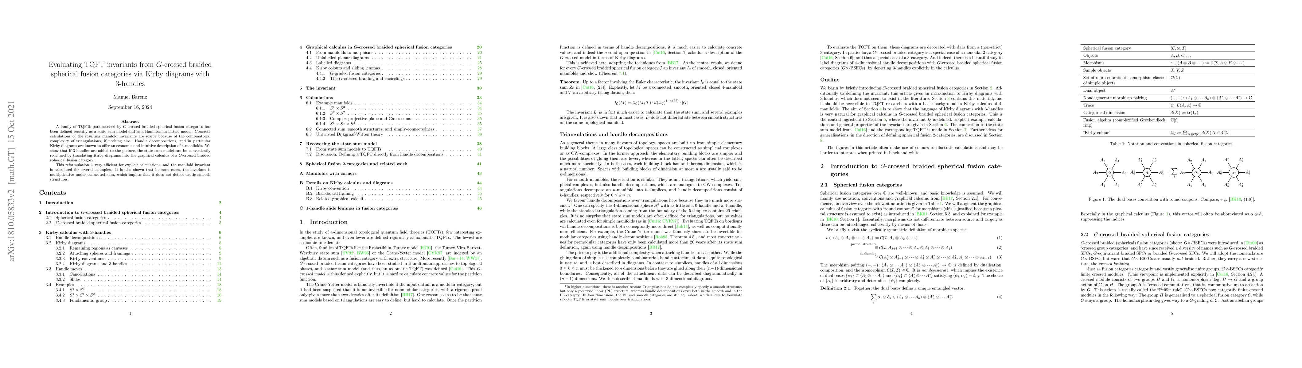 This paper presents a method to calculate TQFT invariants using a reformulated state sum model based on G-crossed braided spherical fusion categories, employing Kirby diagrams with 3-handles for efficient computation. The resulting manifold invariants are shown to be multiplicative under connected sum, indicating they do not detect exotic smooth structures.