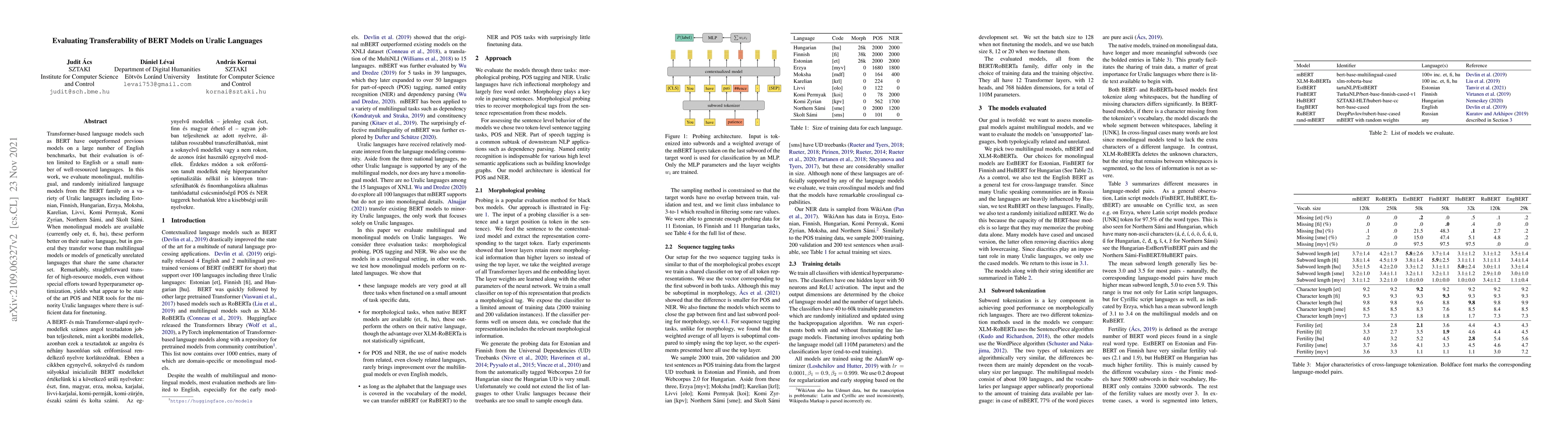 This paper evaluates the transferability of BERT models to various Uralic languages, finding that while monolingual models perform better for available languages, multilingual BERT models and models from unrelated languages sharing the same character set often transfer more effectively. The study concludes that fine-tuning high-resource models can yield state-of-the-art performance for minority Uralic languages with sufficient data.