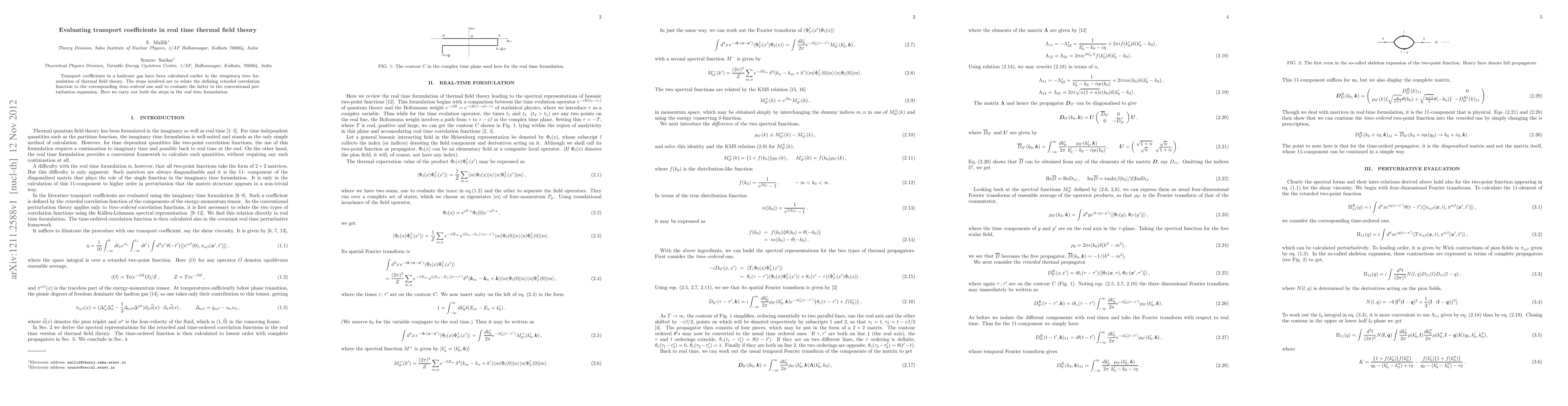 This paper evaluates transport coefficients in a hadronic gas using real time thermal field theory, contrasting with previous methods that utilized the imaginary time formulation, by relating retarded correlation functions to time-ordered ones and performing evaluations in a conventional perturbation expansion.