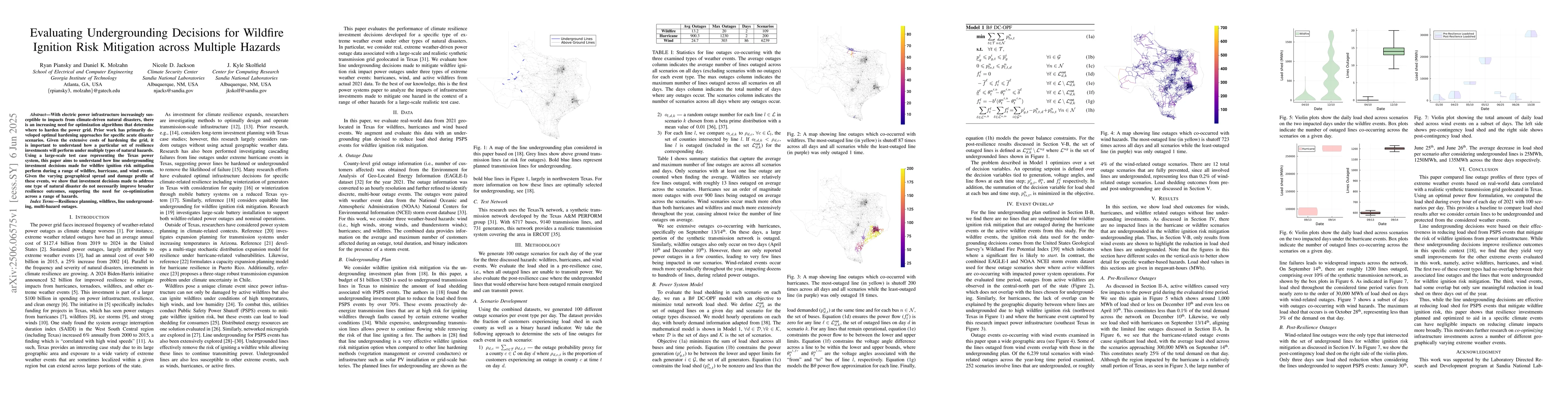 A study evaluates the effectiveness of line undergrounding investments in mitigating wildfire ignition risk and finds that such decisions do not necessarily improve resilience outcomes for other types of natural disasters like hurricanes and wind events.