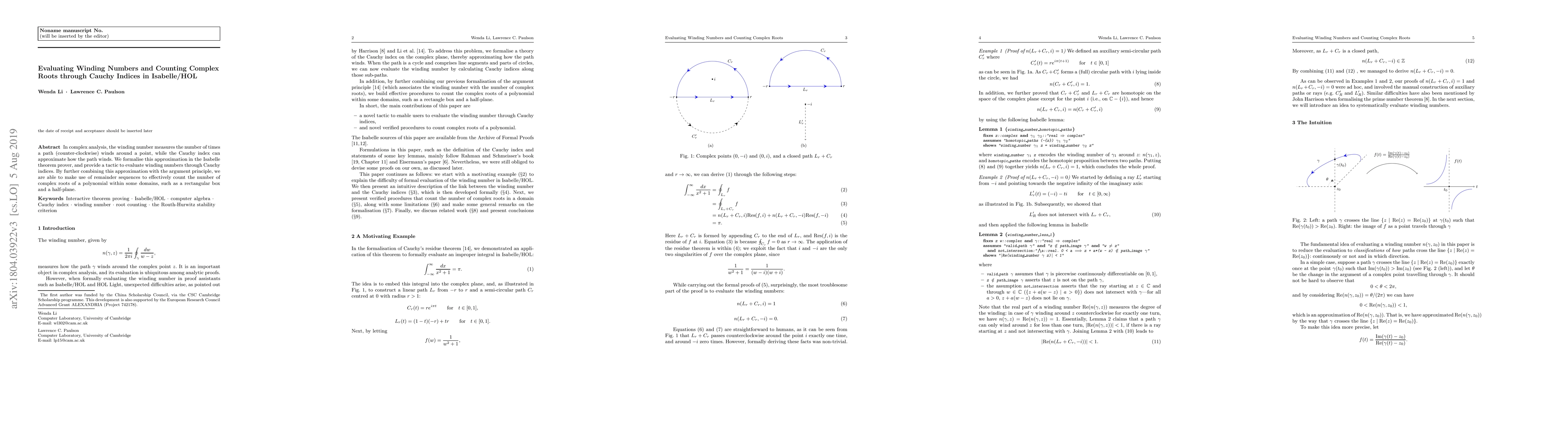 In complex analysis, the winding number measures the number of times a path (counter-clockwise) winds around a point, while the Cauchy index can approximate how the path winds. We formalise this approximation in the Isabelle theorem prover, and provide a tactic to evaluate winding numbers through Cauchy indices. By further combining this approximation with the argument principle, we are able to make use of remainder sequences to effectively count the number of complex roots of a polynomial within some domains, such as a rectangular box and a half-plane.