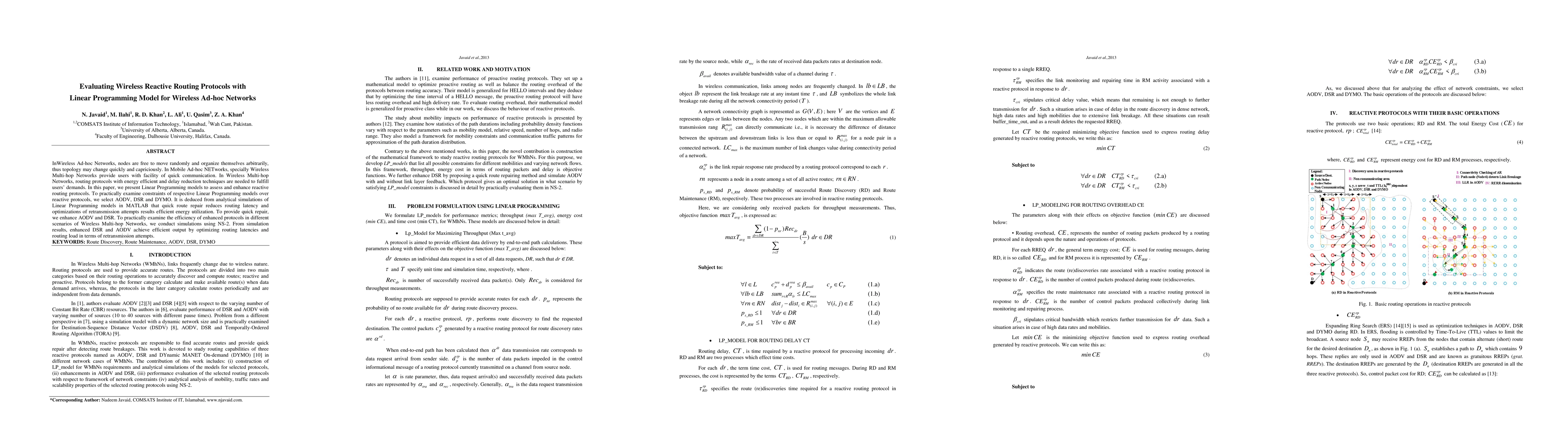 This paper evaluates wireless reactive routing protocols using Linear Programming models to optimize energy efficiency and reduce latency in Wireless Ad-hoc Networks. Enhanced AODV and DSR protocols show improved performance in simulations, achieving lower routing latencies and optimized retransmission attempts.