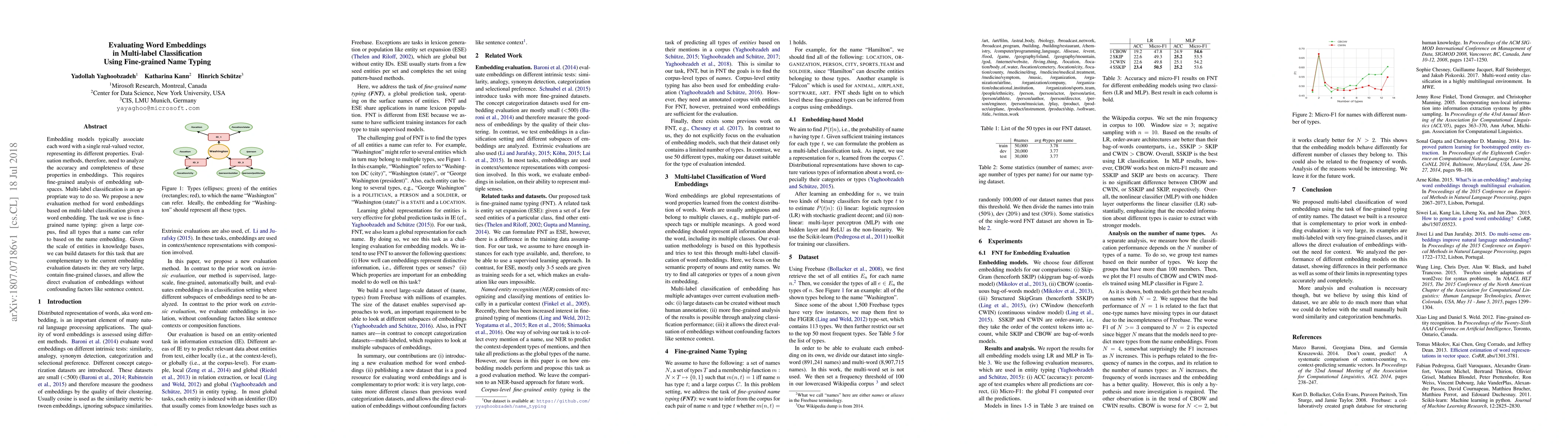 The paper presents a novel evaluation method for word embeddings using multi-label classification of word embeddings based on fine-grained name typing, along with a large-scale dataset for this purpose.